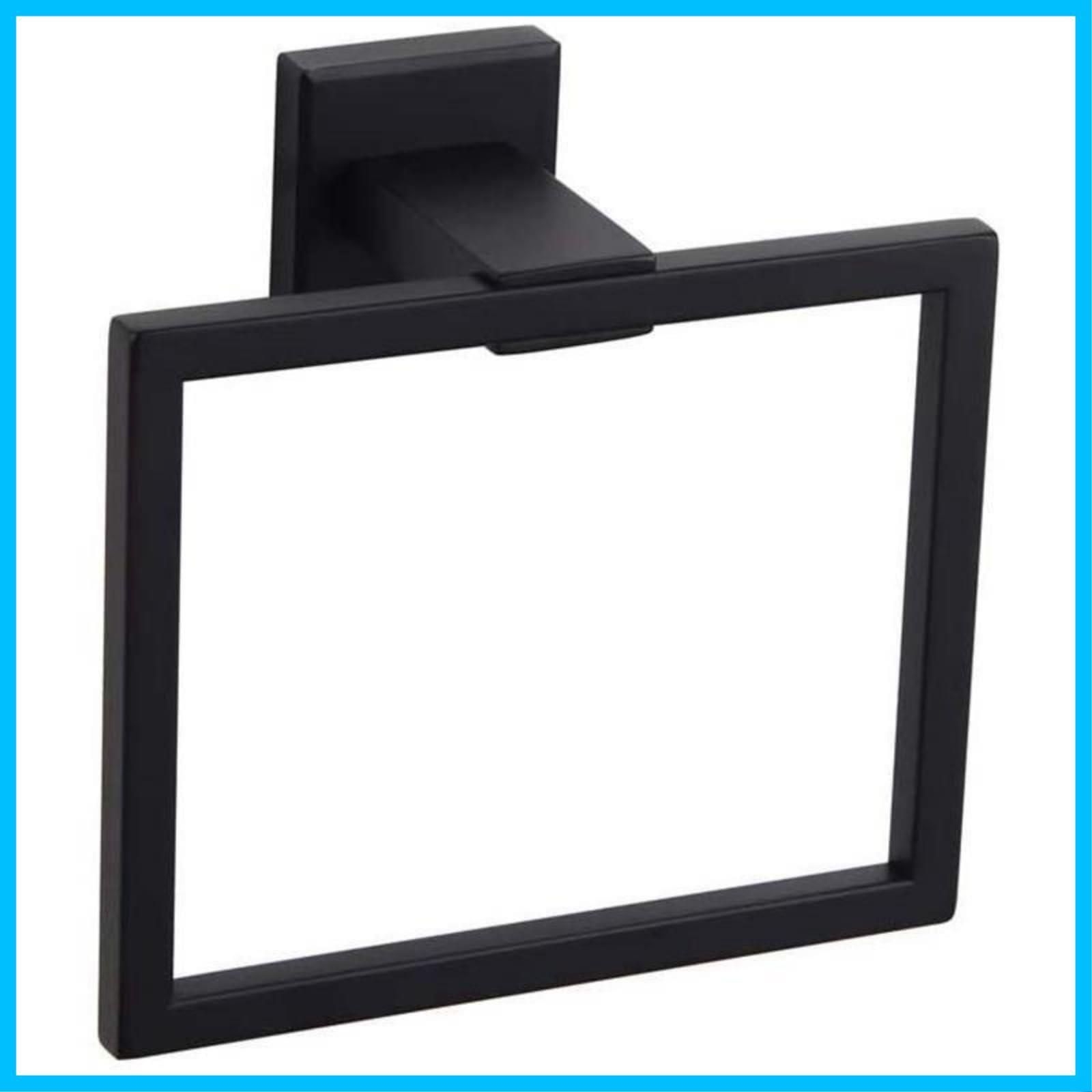 【KWQKEM】タオル掛けリング ステンレス タオル掛け おしゃれ 壁付け タオルホルダー タオルハンガー シンプルモダン 収納 トイレ・ 洗面所 ・キッチン用 ネジ付き ブラック Square Towel Ring Black Hand