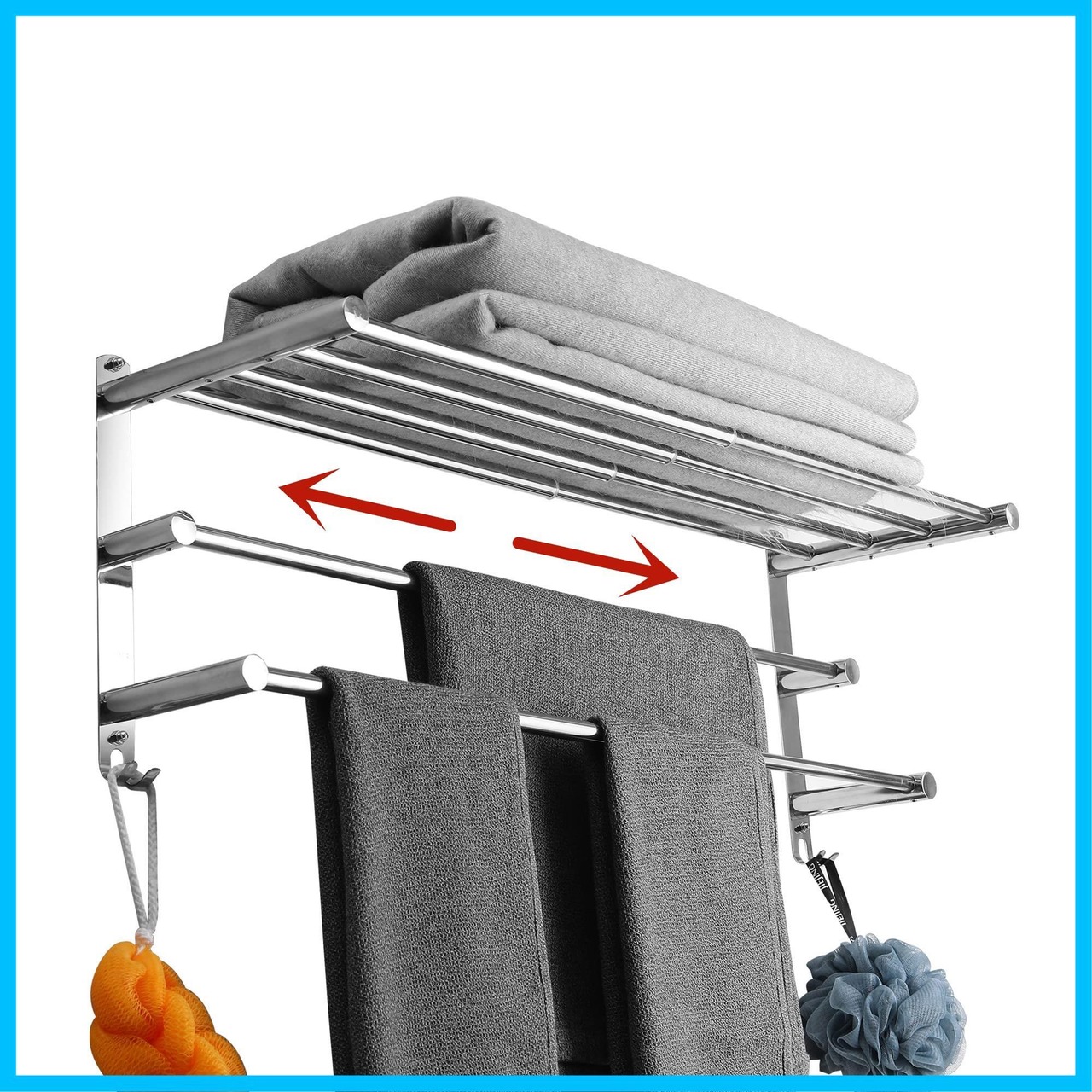 CAXIMSY 伸縮可能タオル掛け 洗面所ステンレス タオルラック 粘着 タオルハンガー キッチン バスルームタオルかけ【伸縮可能な長さ43-78cm】 (三重タオル掛け)