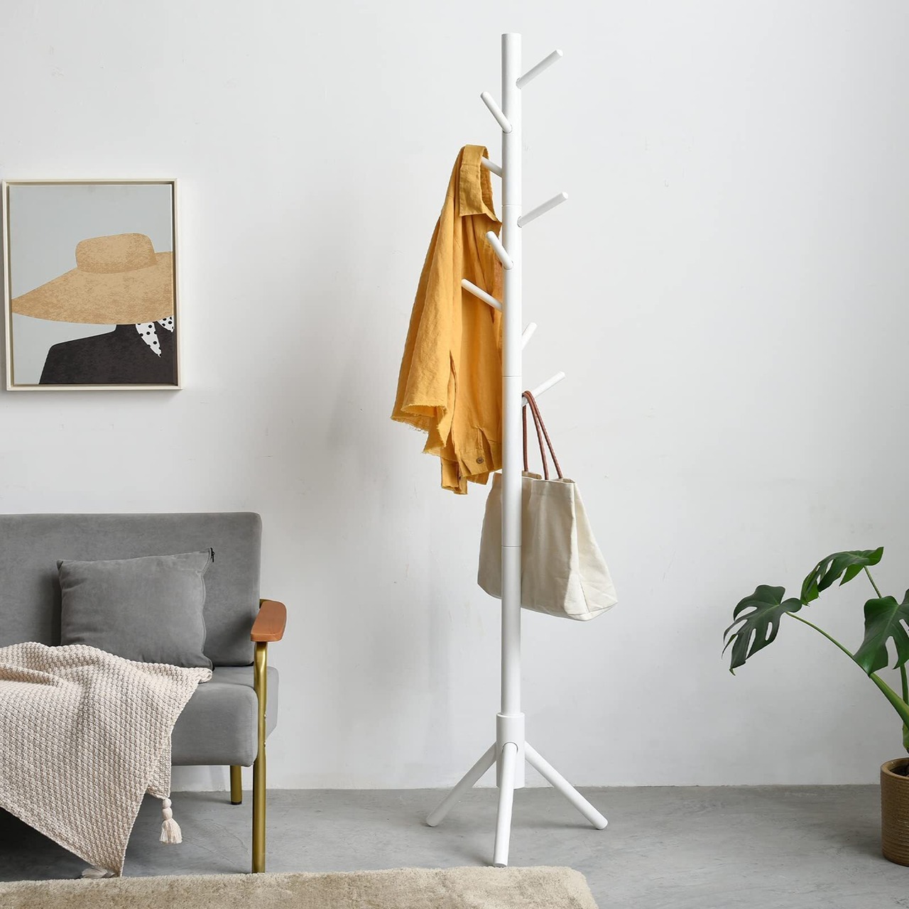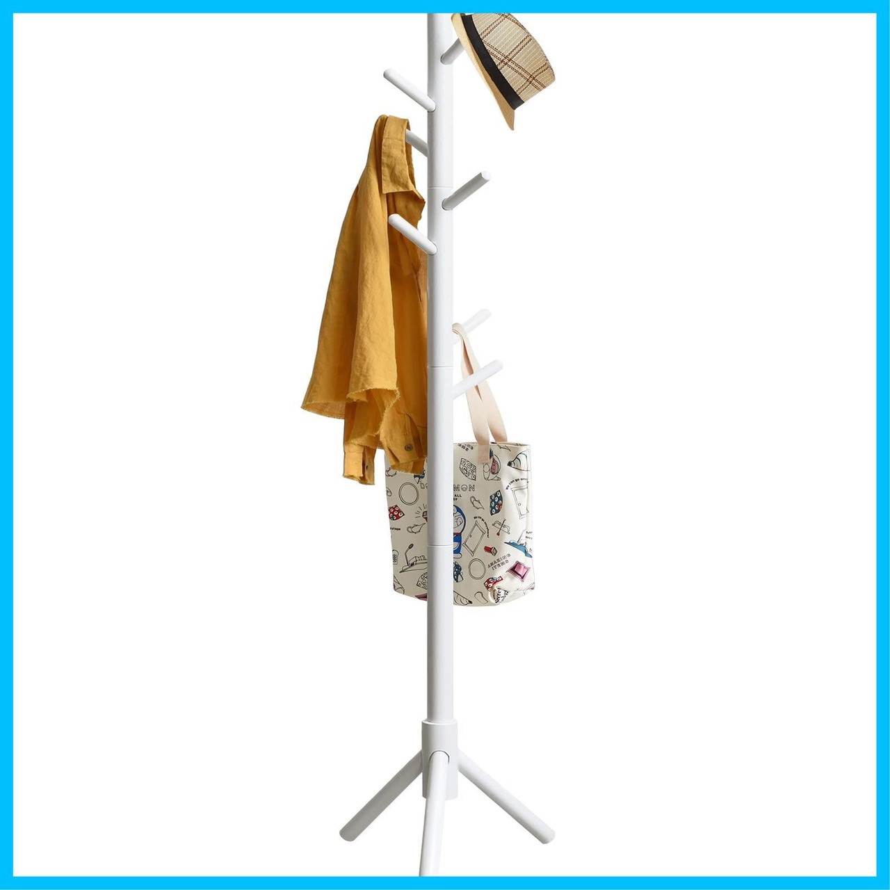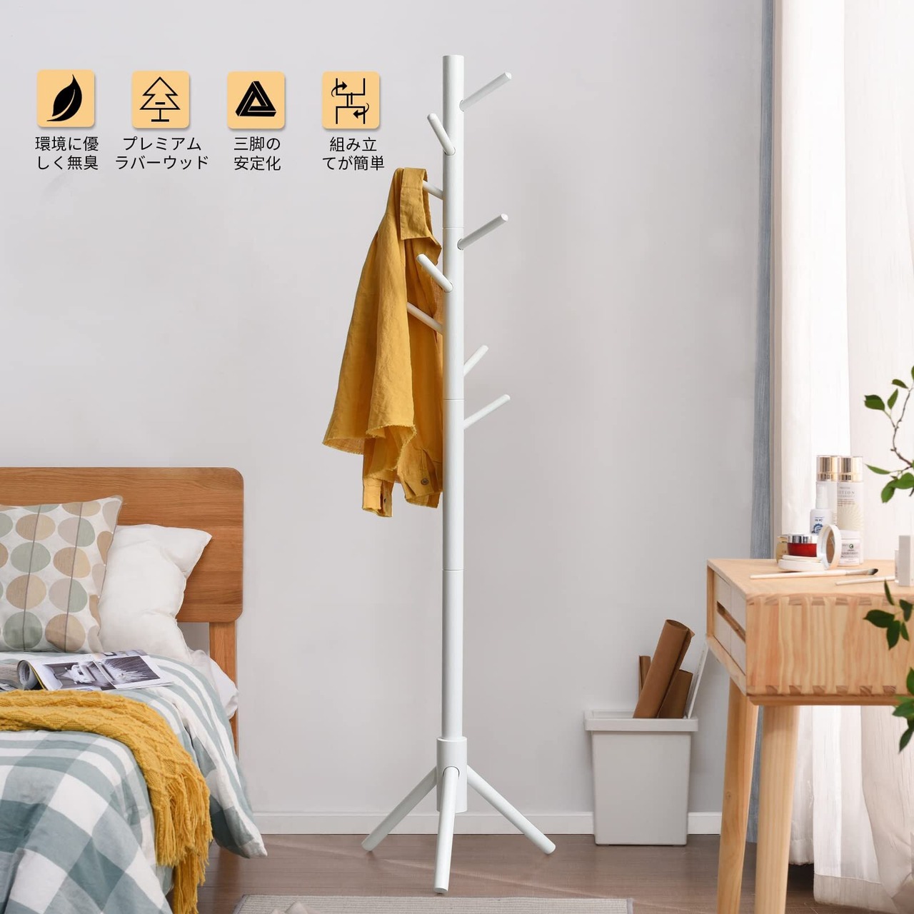 【数量限定】IBUYKE ポールハンガー おしゃれ コンパクト 衣類収納 木製 コートハンガー 落ちにくい 倒れにくい キッズポールハンガーへ変更可能 枝型フック設計 高さ183cm 組立て簡単 ホワイト JPRF-1194