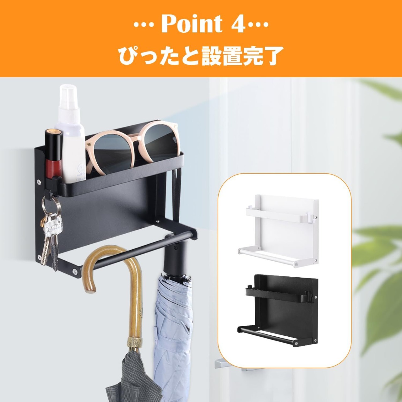 SAIKEYO 傘立て トレー付きマグネット 傘立て スマート 傘立て 玄関扉収納 フック付き 玄関収納 屋外収納 トレー付き 多機能傘収納 玄関の壁掛け式 (ブラック 2個)