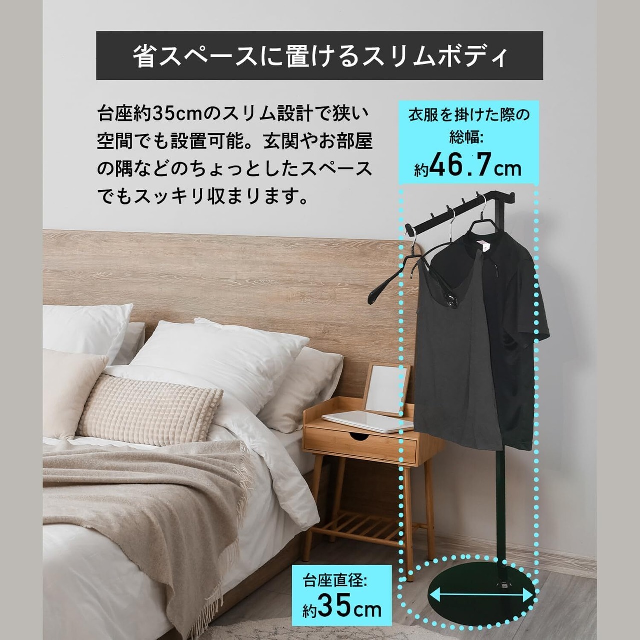 タマトシ ポールハンガー コートハンガー カバン アウター 落ちにくい 倒れにくい おしゃれ 片斜め 傾斜 スリム 省スペース 頑丈 玄関 店舗用 オフィス 衣類 隙間 納 キッズ メンズ レディース オールホワイト