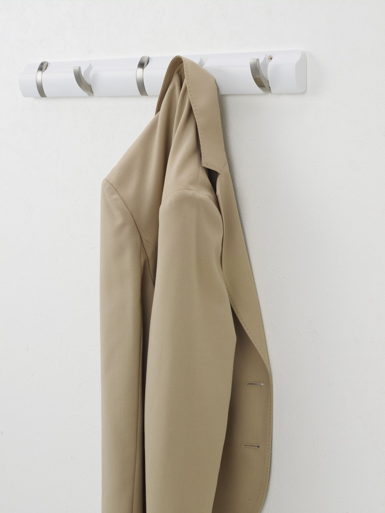 【特価セール】[ドウシシャ] 壁掛けフック ウォールハンガー4連 省スペース ホワイト 幅45×奥行2.5-5.2×高さ5.8cm W4HOOK-WH