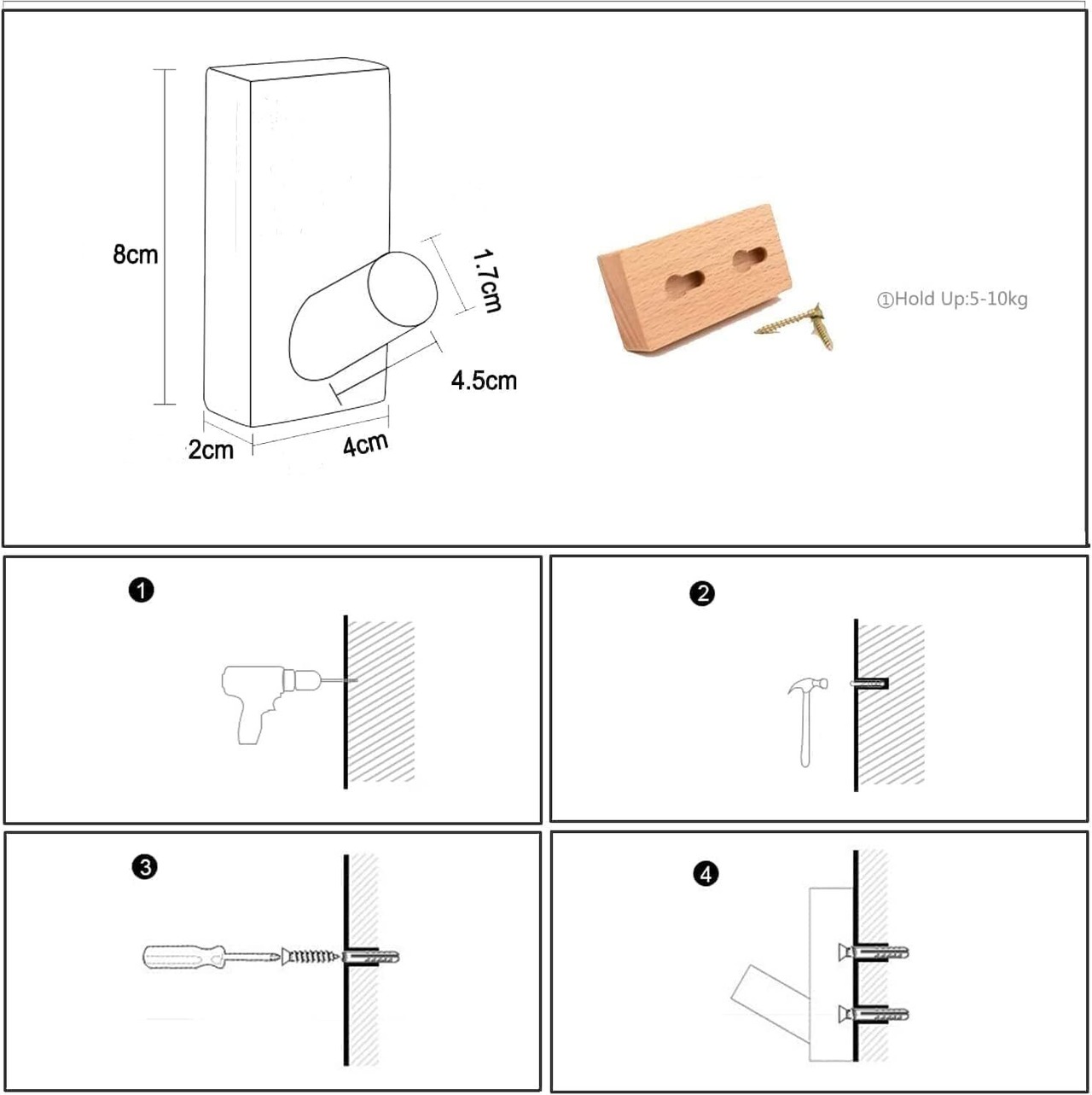 【取り付けが簡単で丈夫】: ドリルで穴を開け、ウォールアンカーを挿入し、ネジで固定するだけです。2~20Kgまで保持でき、より良いハードウェアで、より頑丈で強いです。
