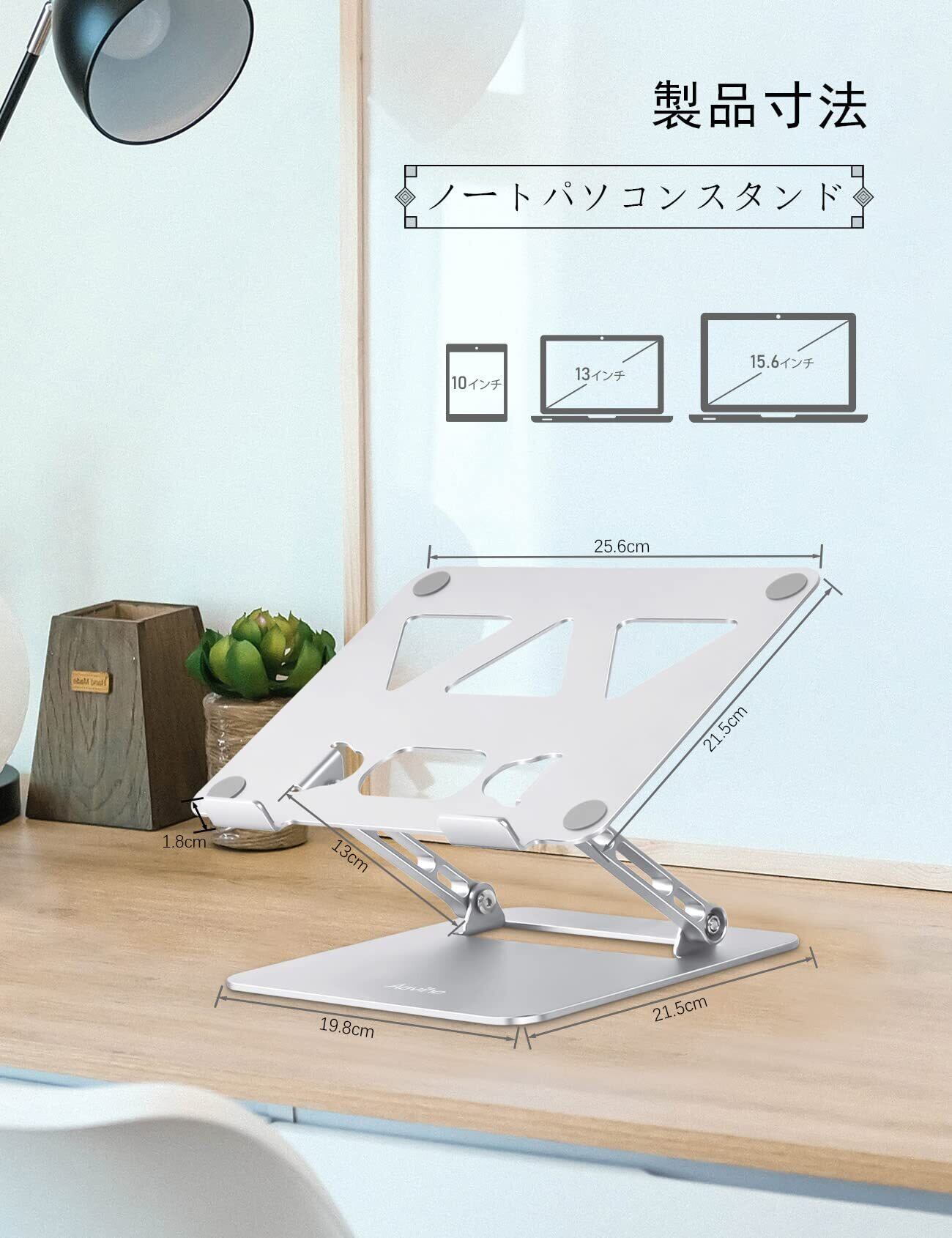 【在庫処分】アオビホ(Aoviho)-ノートパソコンスタンド- ホルダー PC 折りたたみ式 人間工学 無段階高さ&角度調整可能 姿勢改善 腰痛&猫背&肩こり解消 滑り止め 在宅仕事 つくえ 机 省スペース アルミ製軽量 ZOOM会議 Macbook Air,Macbook Pro,iPad,15.6インチまでのノートパソコンやタブレットに対応 (銀 シルバー)