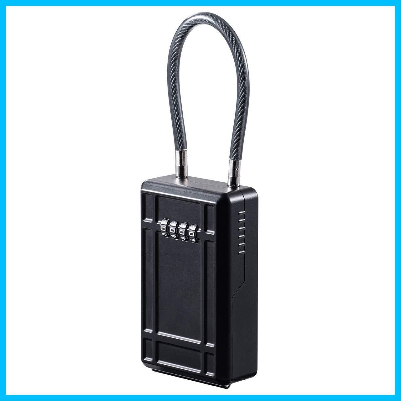 【特価商品】サンワダイレクト キーボックス ダイヤル式 4桁 ワイヤー長20cm 大型 鍵収納 盗難防止 200-SL065BK
