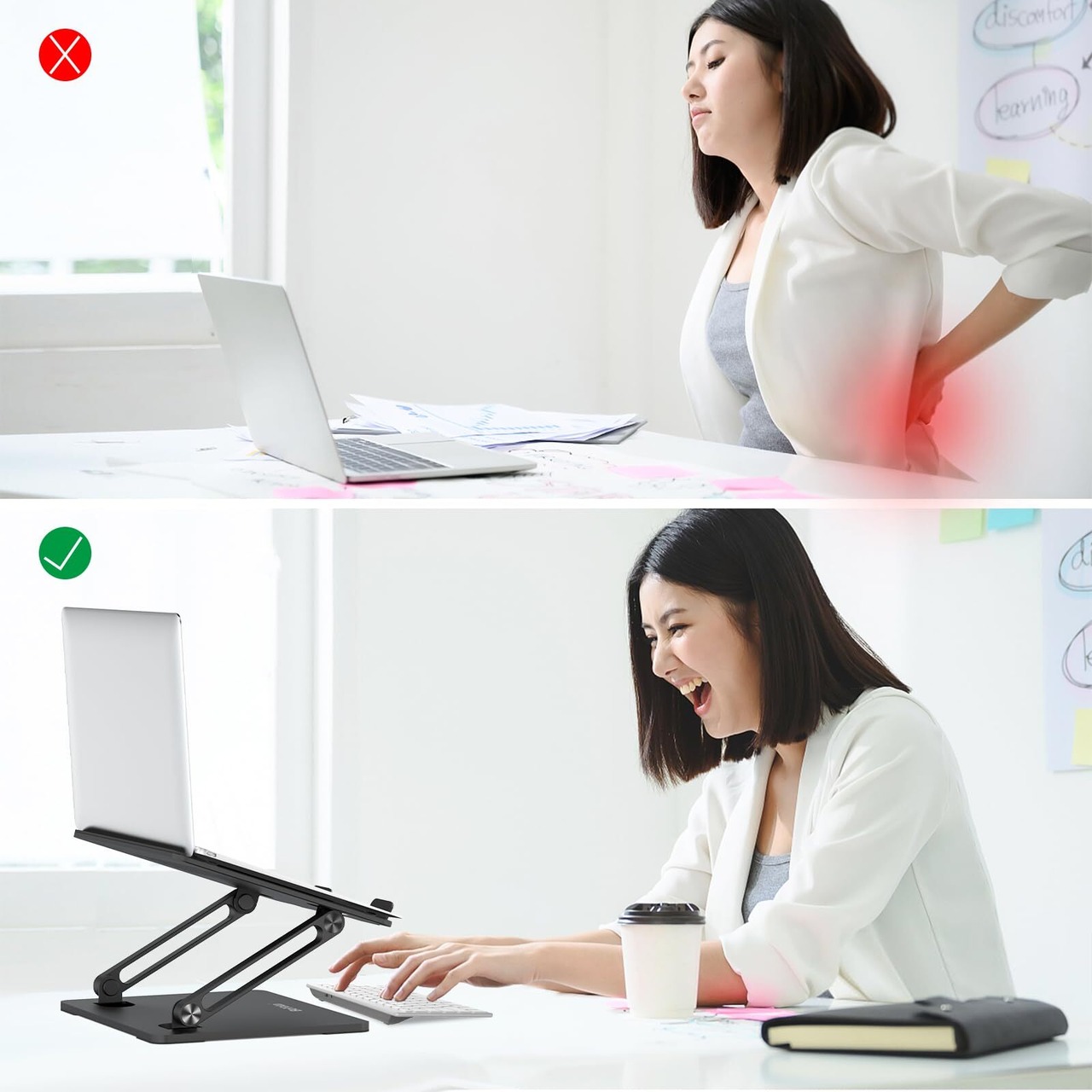 BoYata ノート パソコン スタンド PCスタンド パソコンスタンド 人間工学設計 安定性 無段階高さ調整 姿勢改善 折りたたみ式 滑り止め 炭素鋼製 在宅勤務 15インチ以下対応