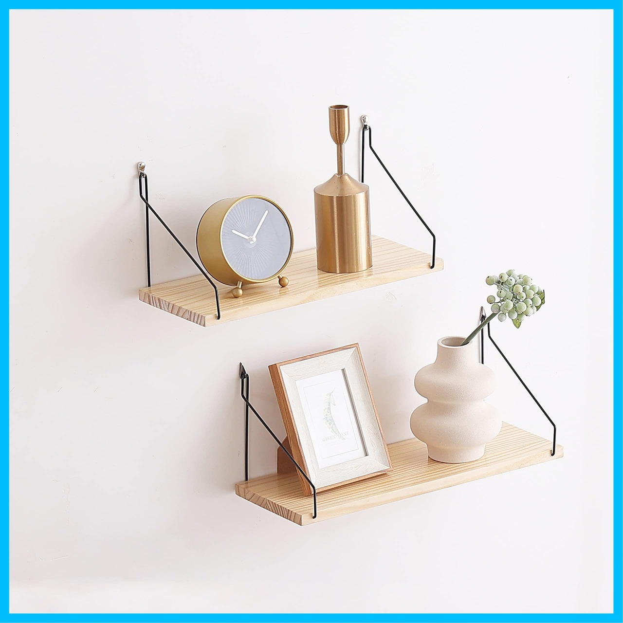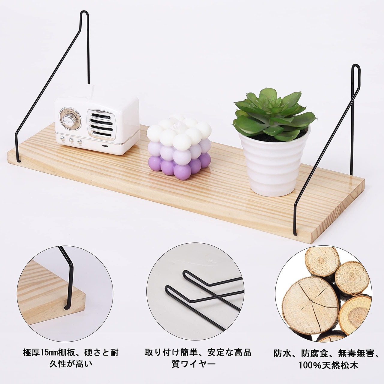ウォールシェルフ 壁を傷つけない War Horse 42cm2個セット 壁 棚 天然松木製 賃貸 穴あけない 壁掛け棚 取り付け簡単 インテリア ウォールラック 玄関 キッチン バスルーム リビング 壁面収納(松木製 ナチュラル)