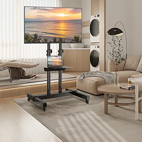 Rfiver テレビスタンドキャスター付き tvスタンド 二重支柱設計 32~75インチ対応 高さ調節可能 テレビスタンド ハイタイプ 棚付き 移動式 耐荷重40 kg VESA600X400 mmまで 省スペース 家用・会社用・業務用 MT1005