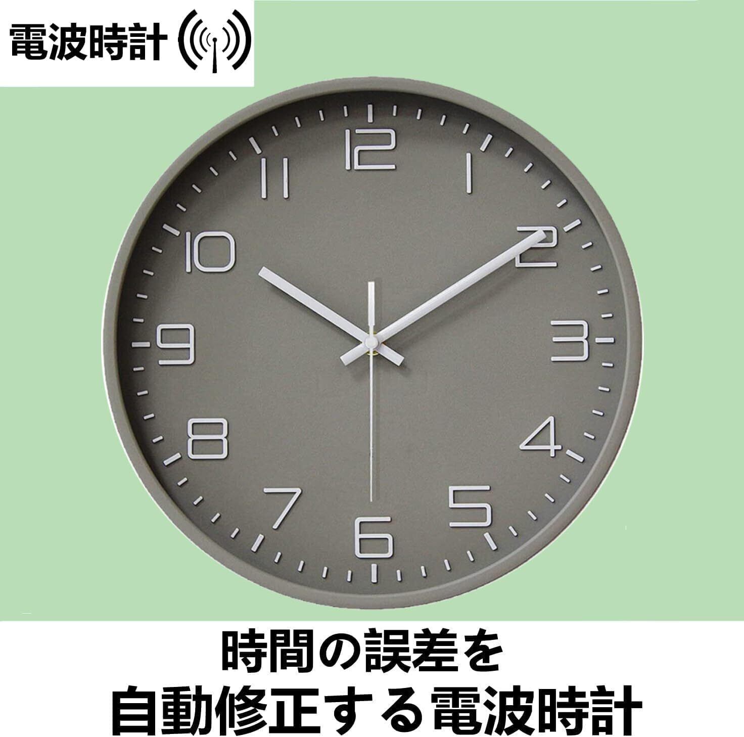 Nbdeal 掛け時計 電波時計 静音 連続秒針 おしゃれ 壁掛け 時計 立体文字 北欧 直径30cm 自動受信 静か(灰色)C-501