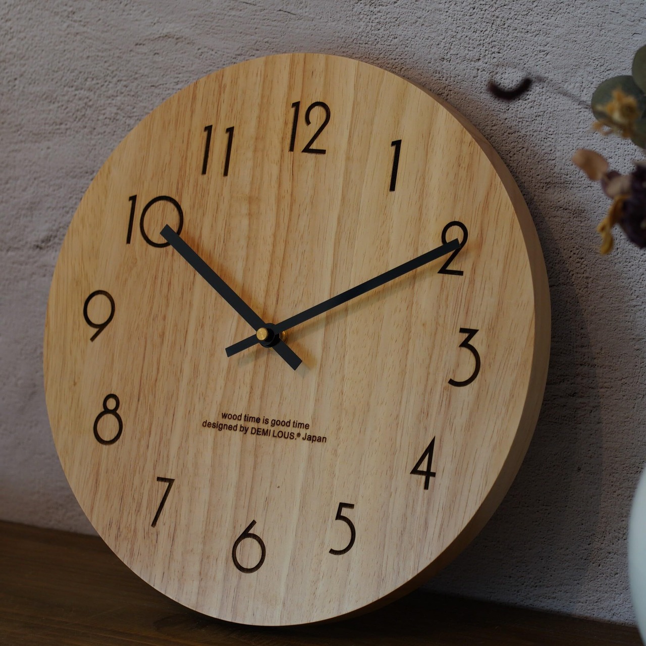 壁掛け時計 天然木製 30cm おしゃれ アナログ 静音 ムーブメント インテリア リビング 寝室 オフィス デザイナーズ DEMI LOUS正規品 (定番デザイン)