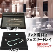 高級宝石店や、ブランドショップなどの店頭での接客や販売にご利用いただける、高級感あふれるリング溝付きアクセサリートレイです。PUレザーとベロアタイプの2種類からお選びいただけます。