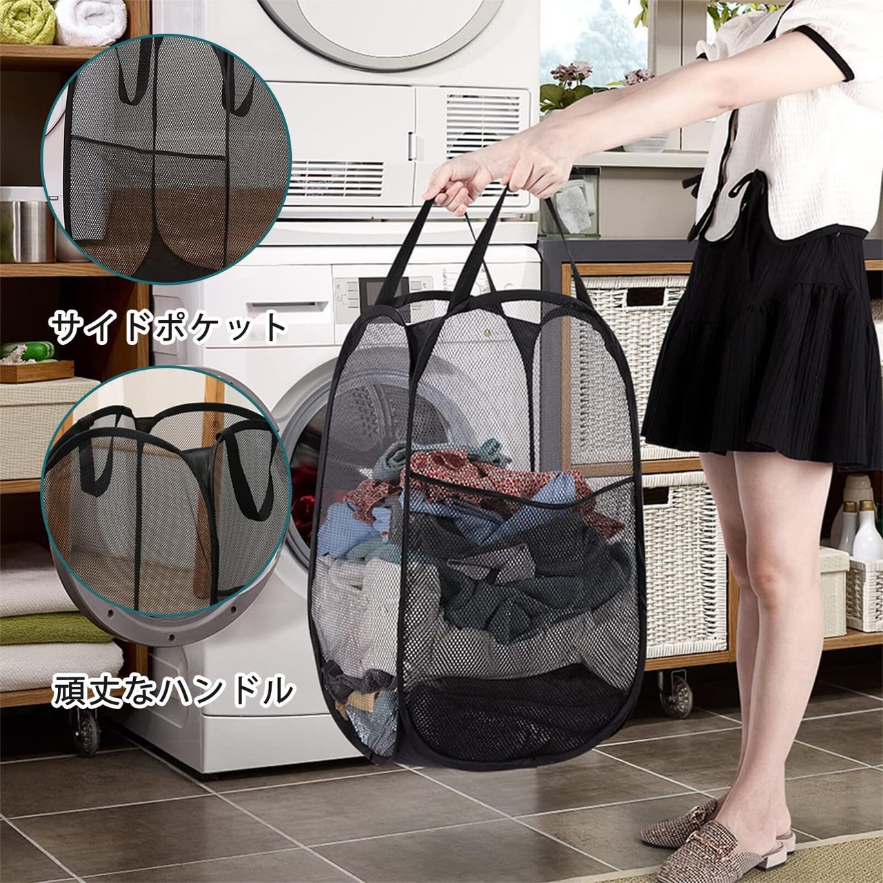 【人気商品】AYO 洗濯カゴ ランドリーバスケット 洗濯かご 折りたたみ 縦型 70L 大容量 メッシュ 省スペース ランドリーバッグ 洗濯籠 洗濯物入れ 収納 自立 旅行 持ち運び可能 ハンドル付き ブラック
