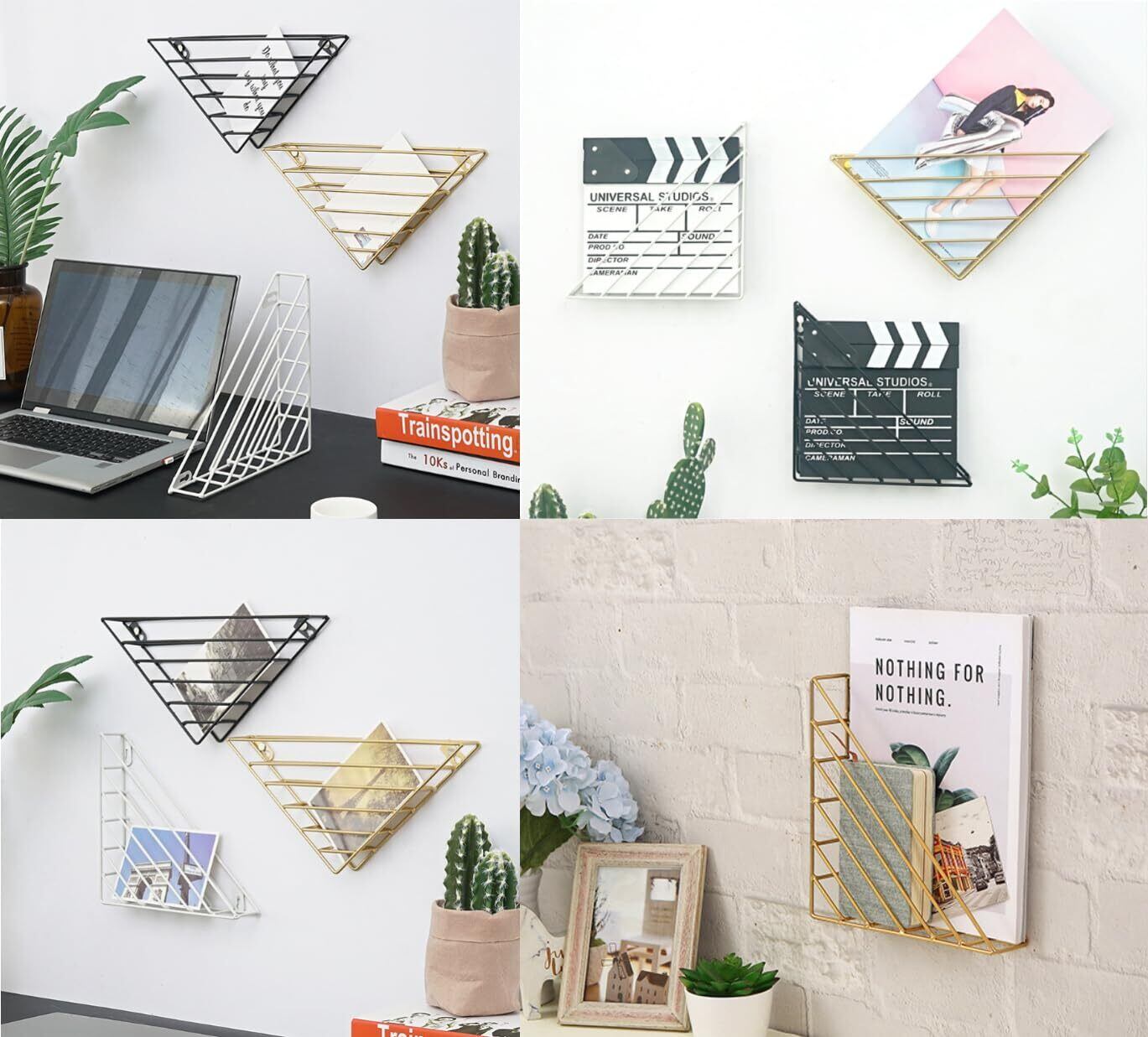 【新着商品】マガジンラック 壁掛け 卓上 三角 スチール製 22.5㎝×22.5㎝×5㎝ ディスプレイラック マガジンスタンド (ブラック)