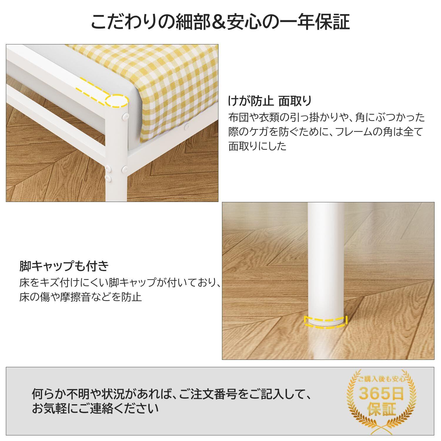 【組立簡単&安心の12ヶ月品質保証】日本語の取扱説明書toが付いており、説明書の手順によって、迷いなく簡単組立可能の組み立て式ベッドです。2人で約30~60分簡単に組み立てることが可能です。※組立目安:30~60分ぐらい(大人2人以上推奨) また、弊社から購入されました商品は12ヶ月の保証期間をご提供しておりますから、何らか不明や状況があれば、ご注文番号をご用意の上、ご連絡いただけましたら、各種サポートを速やかに提供させていただきます。