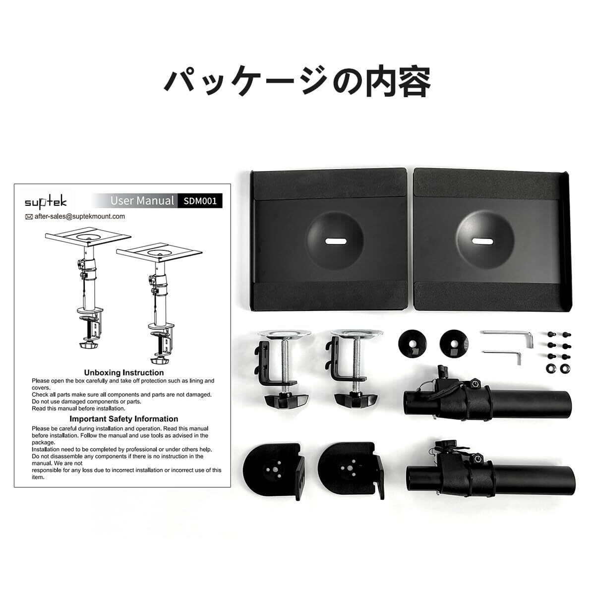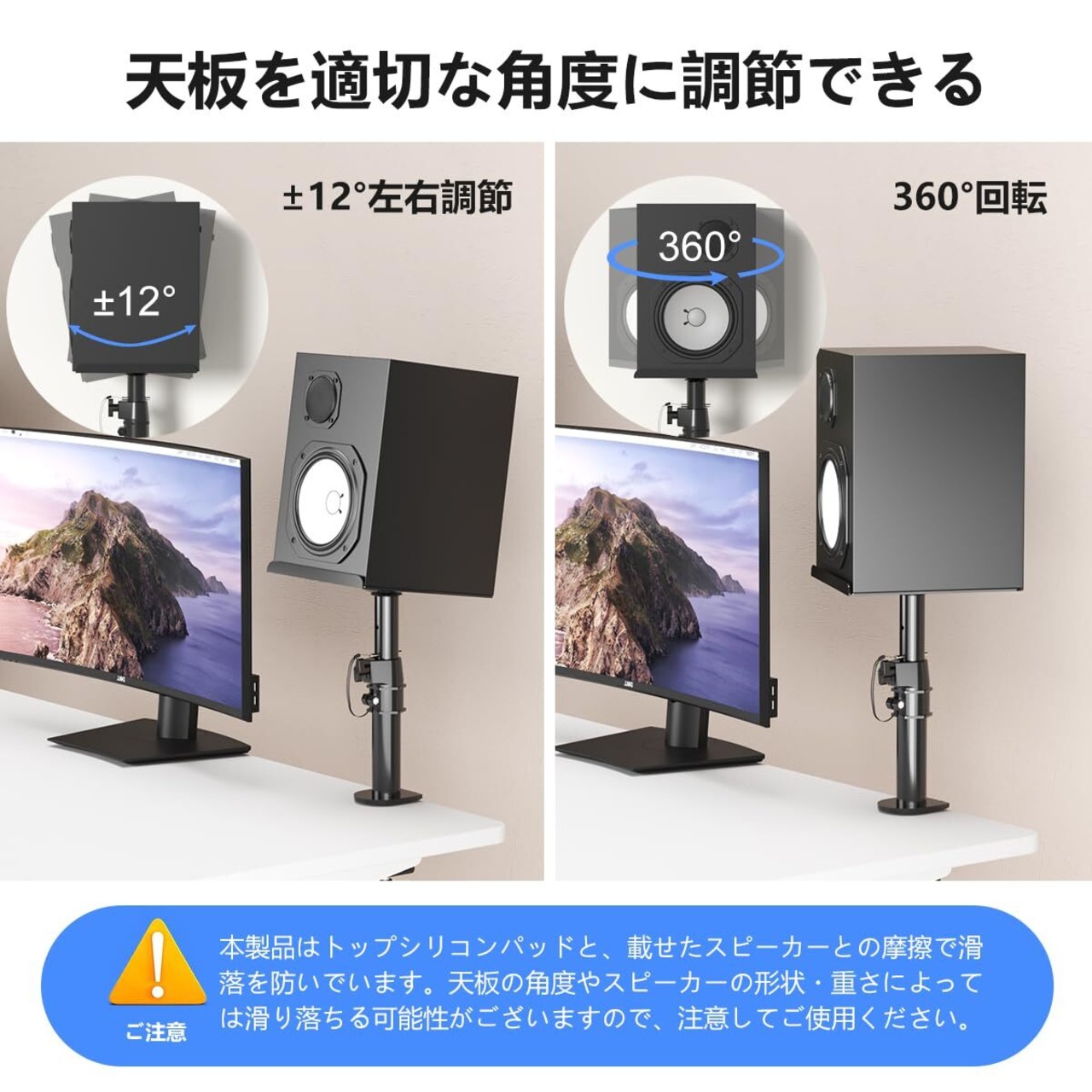 suptek スピーカースタンド スピーカー台 スピーカーマウント 卓上 クランプ 12°左右調節 360°回転 耐荷重各15KG 2個セット 1ペア 2台1組 SDM001B