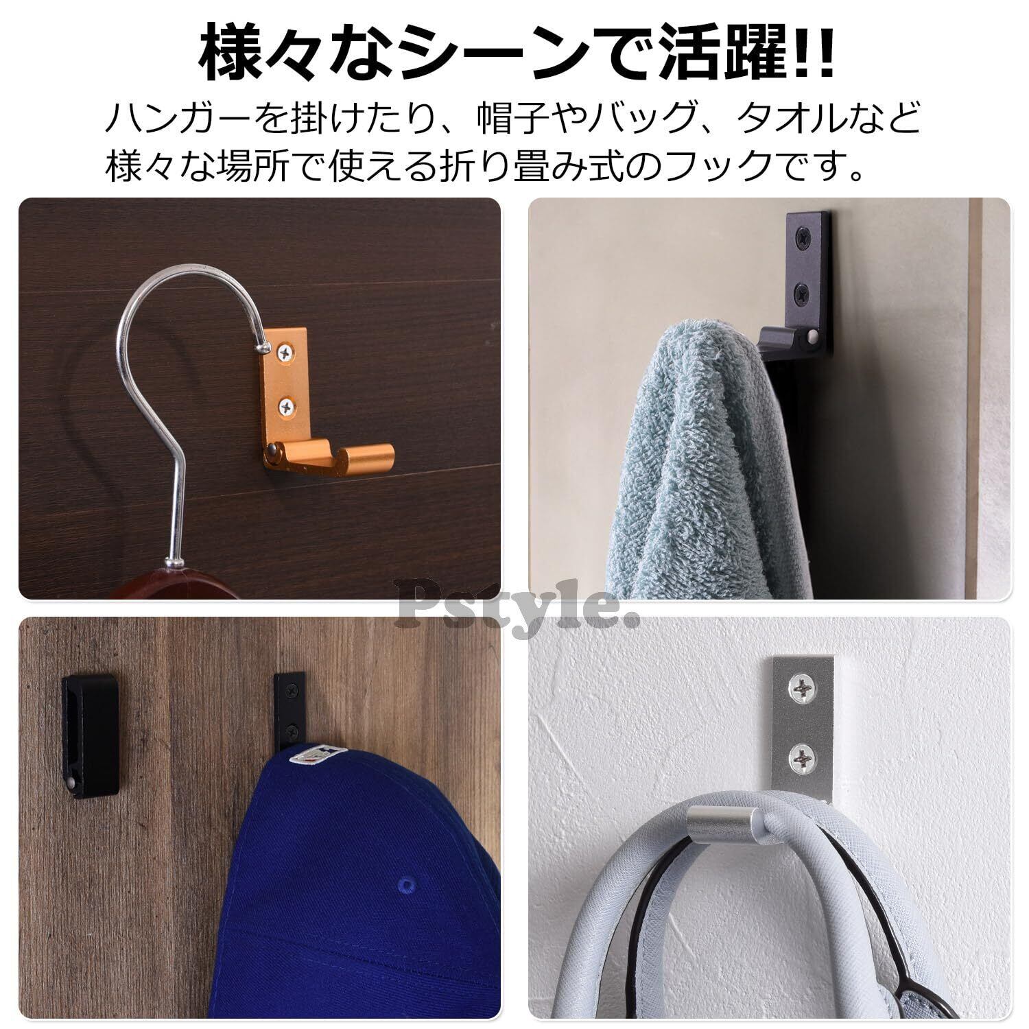 Pstyle. 壁掛けフック 折り畳み式 ウォールハンガー ネジ付き 3個セット PST-167 (シルバー)