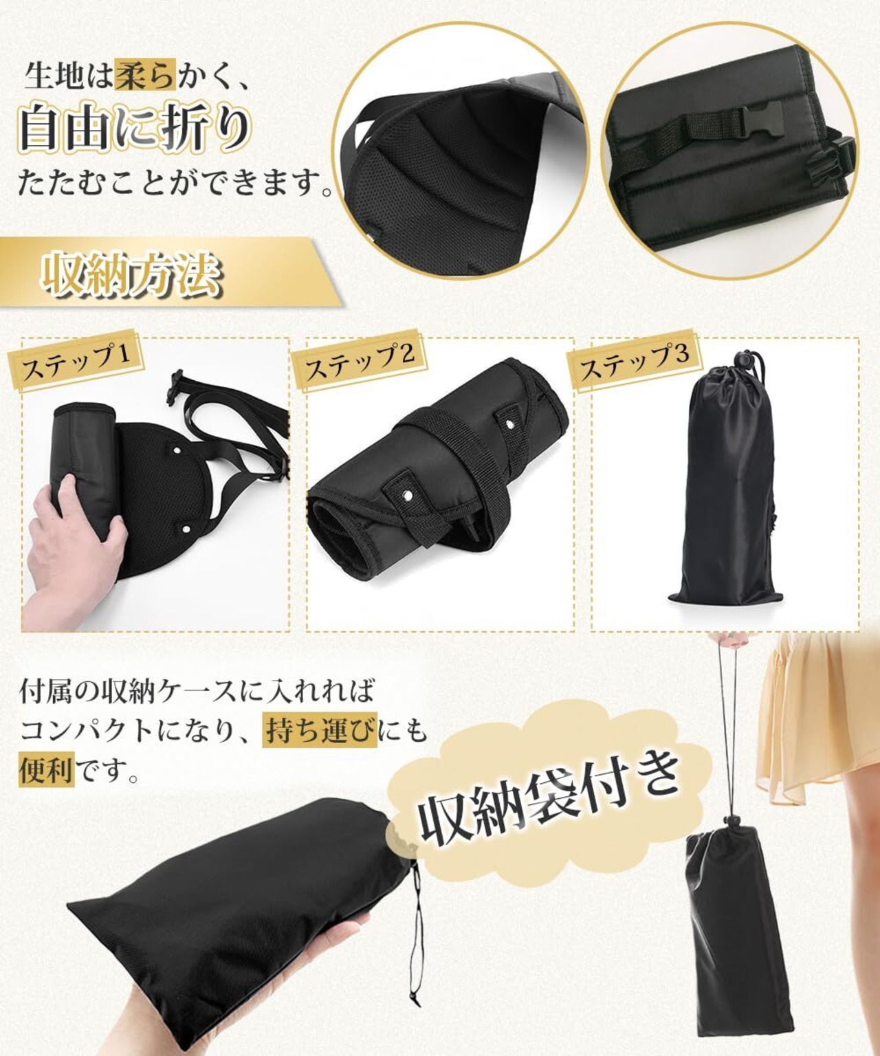 【収納ケース付き】付属の収納ケースに入れればコンパクトになり、持ち運びにも便利です。