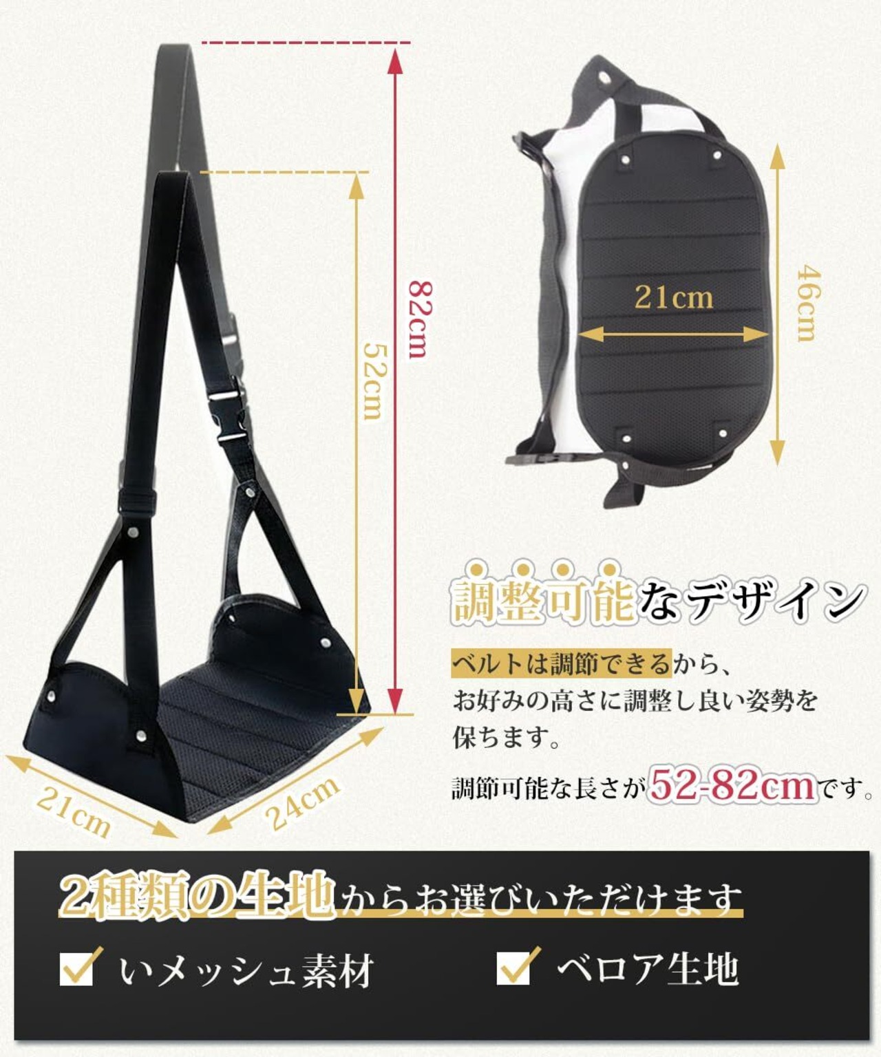 【使いやすい】前方の座席に引っ掛けるだけで簡単取付が可能です。ベルトは調節できるから、お好みの高さに調整し良い姿勢を保ちます。