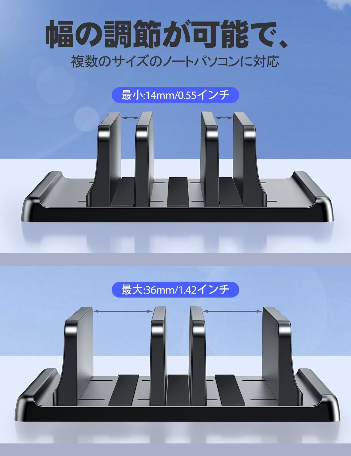 VAYDEERノートパソコンスタンド 縦置きノートpc スタンド 3台収納 ホルダー幅調整可能 ABS樹脂製 for タブレット/ipad/Surface/MacBook Pro Air 縦置き用 -ブラック