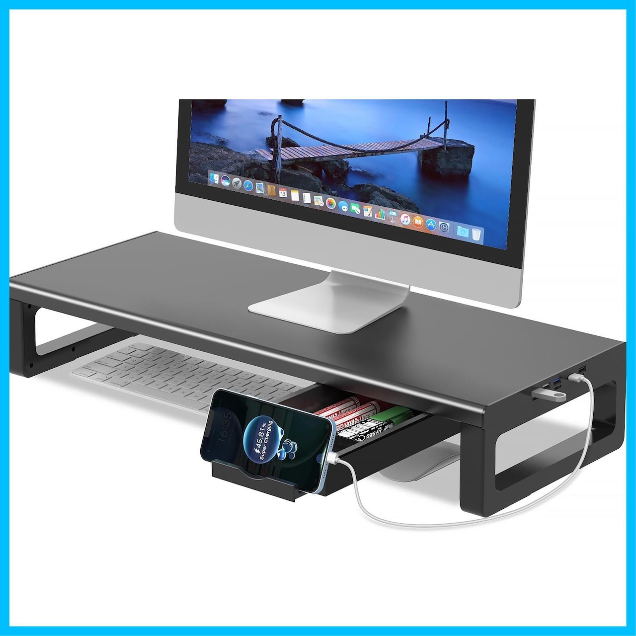 【特価商品】EAYHM モニター台 USB2.0/3.0データ転送付き 机上台 USB/TYPE-C充電付き ディスプレイ 台 引き出しとスマホホルダー付き パソコン 台 モニタースタンド プリンター/iMac/タブレットパソコンに適用 耐荷重25kg