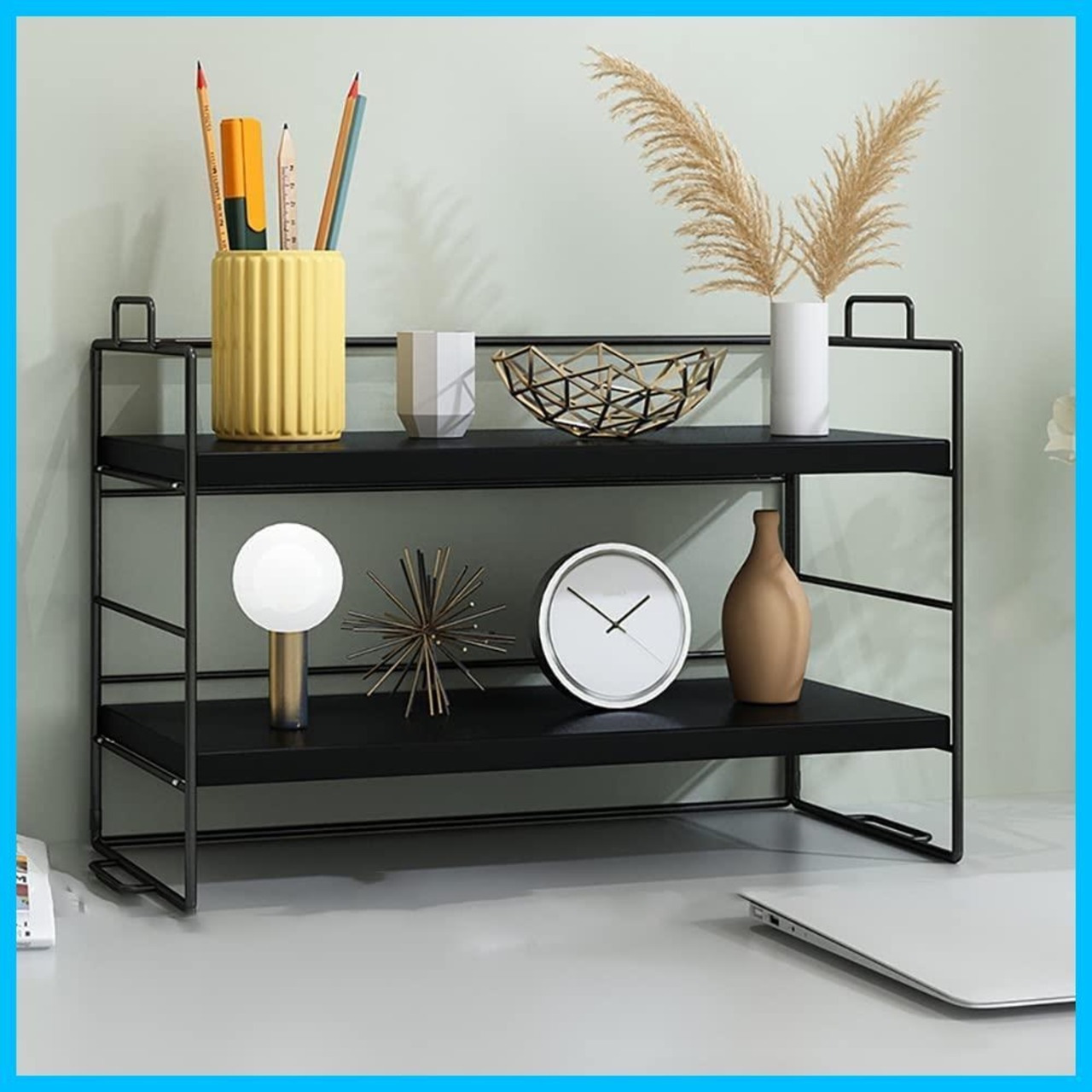 Usumairu 棚 デスク上収納ラック ミニ 卓上 おしゃれ 机上 1段 2段 幅37cm 北欧 オープンラック アイアン デスク上置棚 シェルフ ナチュラル ヴィンテージ