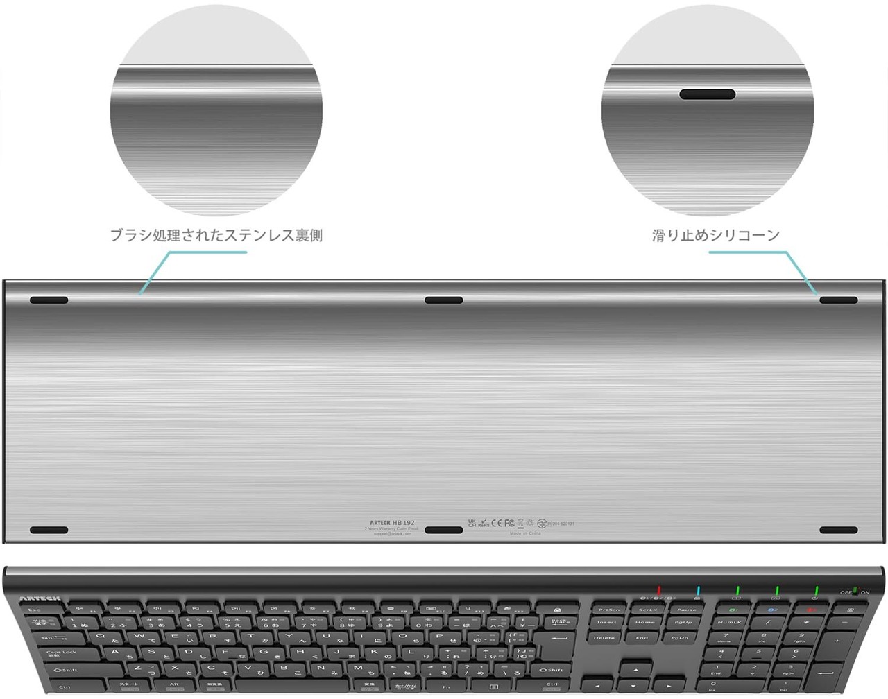 Arteck Bluetoothキーボード 日本語配列 マルチデバイス ステンレススチール フルサイズキーボード iOS, Android, WindowsタブレットPC スマートフォンとの互換性あり 充電式電池内蔵で6ヶ月使用可能