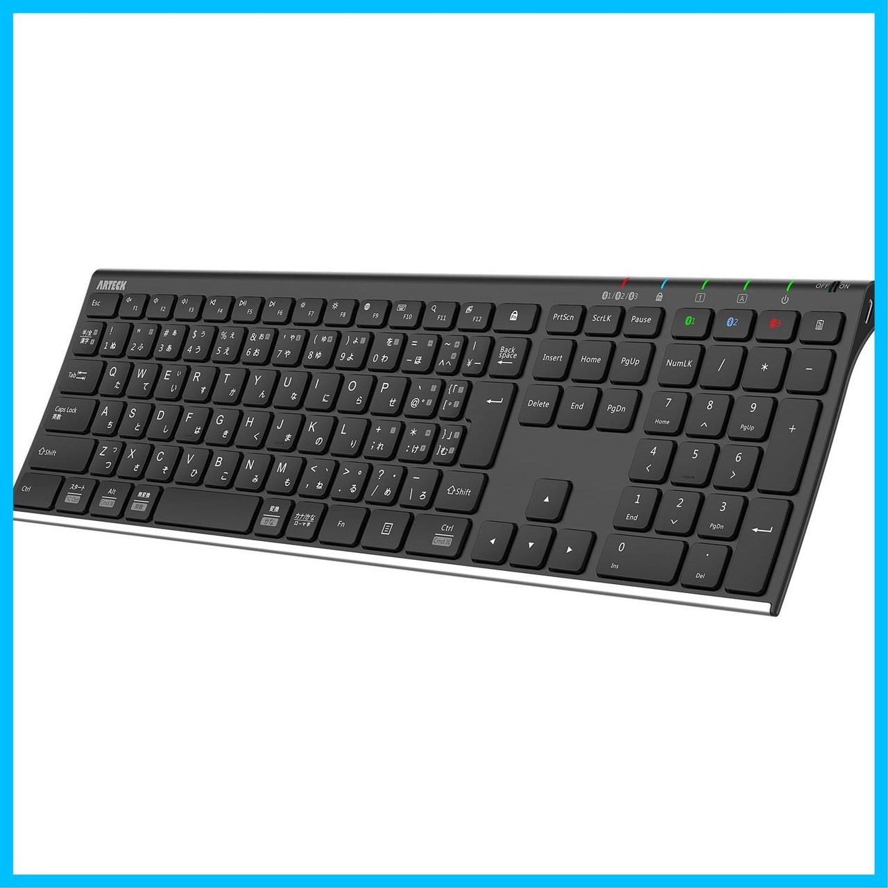 【新着商品】Arteck Bluetoothキーボード 日本語配列 マルチデバイス ステンレススチール フルサイズキーボード iOS, Android, WindowsタブレットPC スマートフォンとの互換性あり 充電式電池内蔵で6ヶ月使用可能