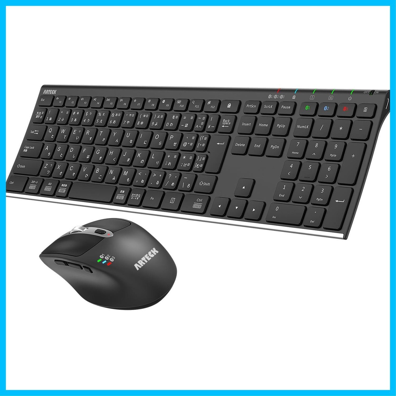 【人気商品】Arteck Bluetooth キーボード マウス セット マルチペアリング 3つデバイスに同時接続できType-C 充電式 フルサイズ Bluetoothキーボード 人間工学に基づいたマウス Windows、iOS, Android,コンピューター、デスクトップ、PC、ラップトップ、iPad、タブレット、スマホとの交換性あり