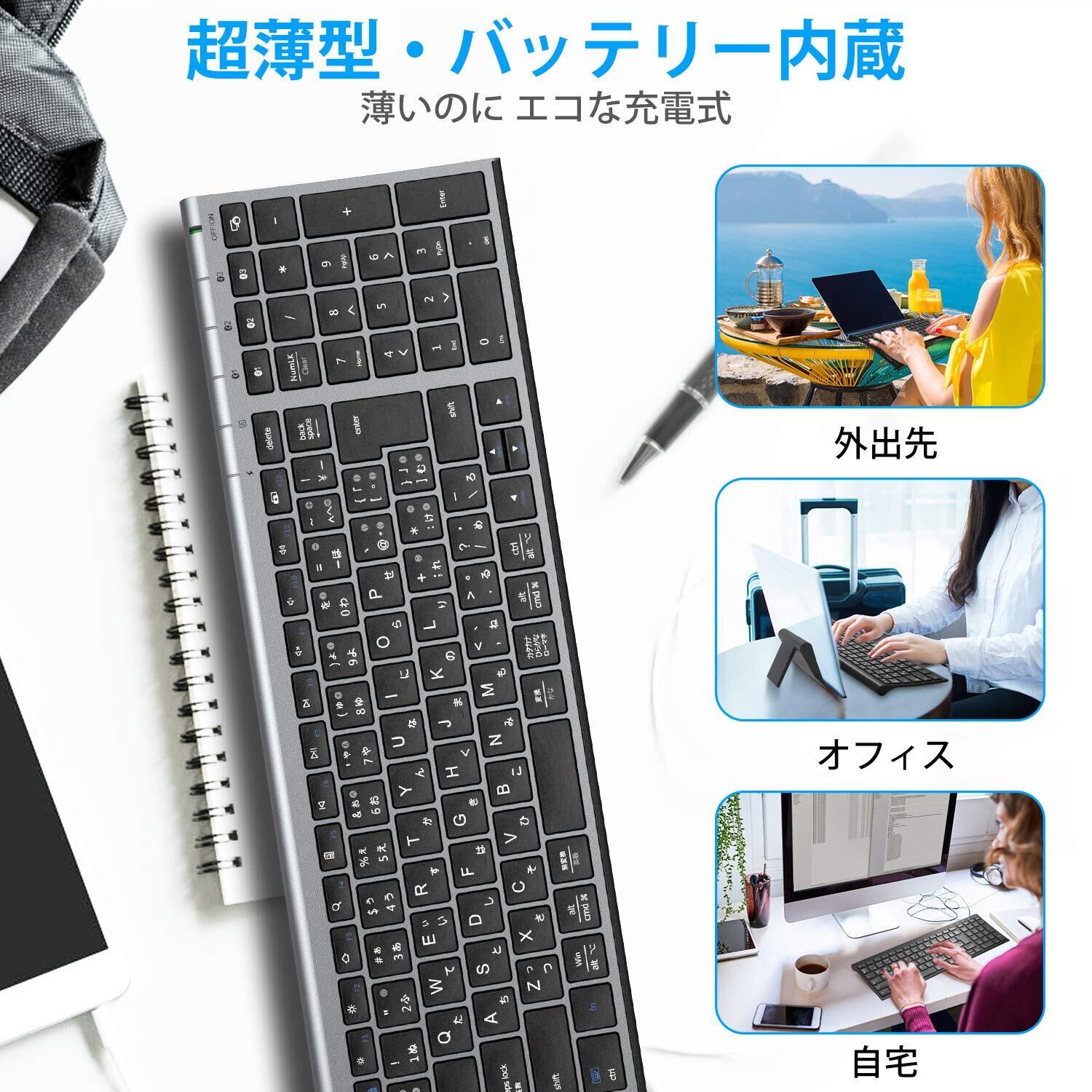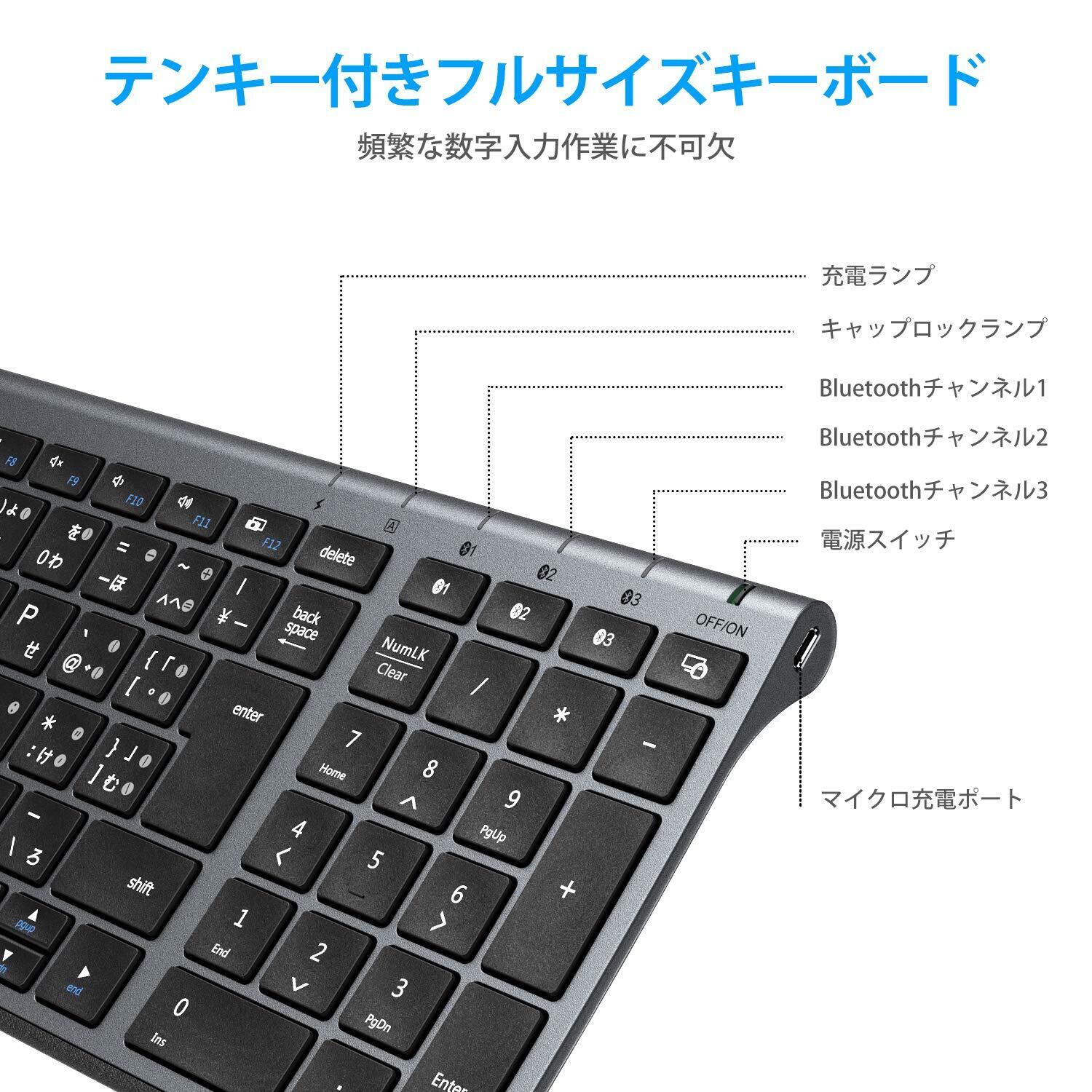【新着商品】iClever キーボード Bluetooth ワイヤレス 無線 日本語JIS配列 3台同時接続可能 テンキー付き フルサイズ 超薄型 静音設計 Type-C充電式 コンパクト パソコン用キーボード ラップトップ PC iPad iPhone スマホ用 Windows Mac iOS Android対応 BK22 グレーブラック