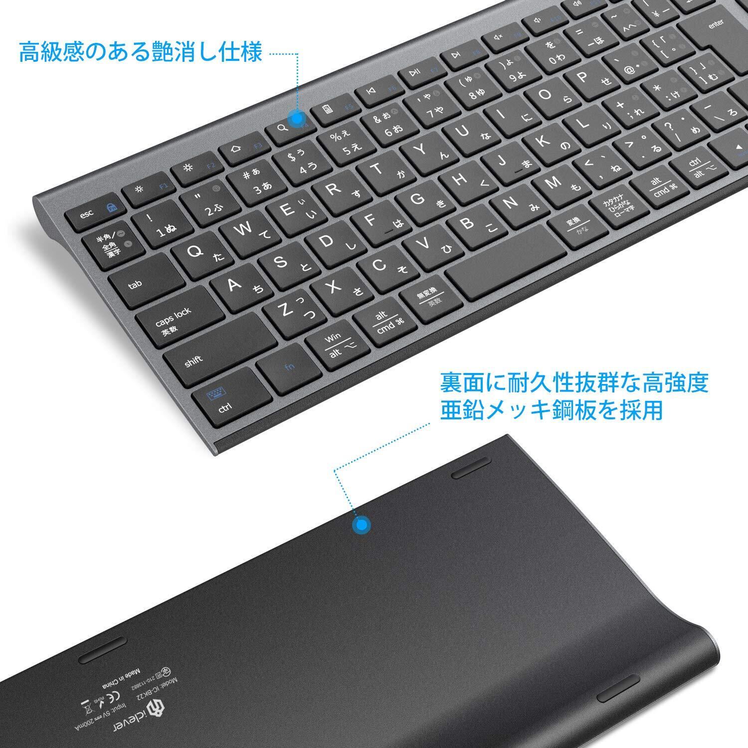 iClever キーボード Bluetooth ワイヤレス 無線 日本語JIS配列 3台同時接続可能 テンキー付き フルサイズ 超薄型 静音設計 Type-C充電式 コンパクト パソコン用キーボード ラップトップ PC iPad iPhone スマホ用 Windows Mac iOS Android対応 BK22 グレーブラック