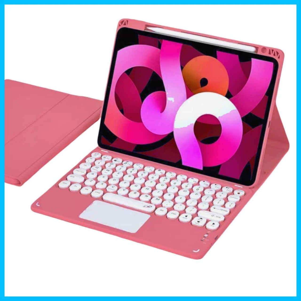 NUWONAYA iPad キーボード ケース iPad 第10/11世代 キーボード カバー タッチパッド搭載 丸型キー 上側Apple Pencil 収納 カラーキーボード 配色 マグネット 脱着式 磁気吸着 多角度調整 かわいい 濃いピンク