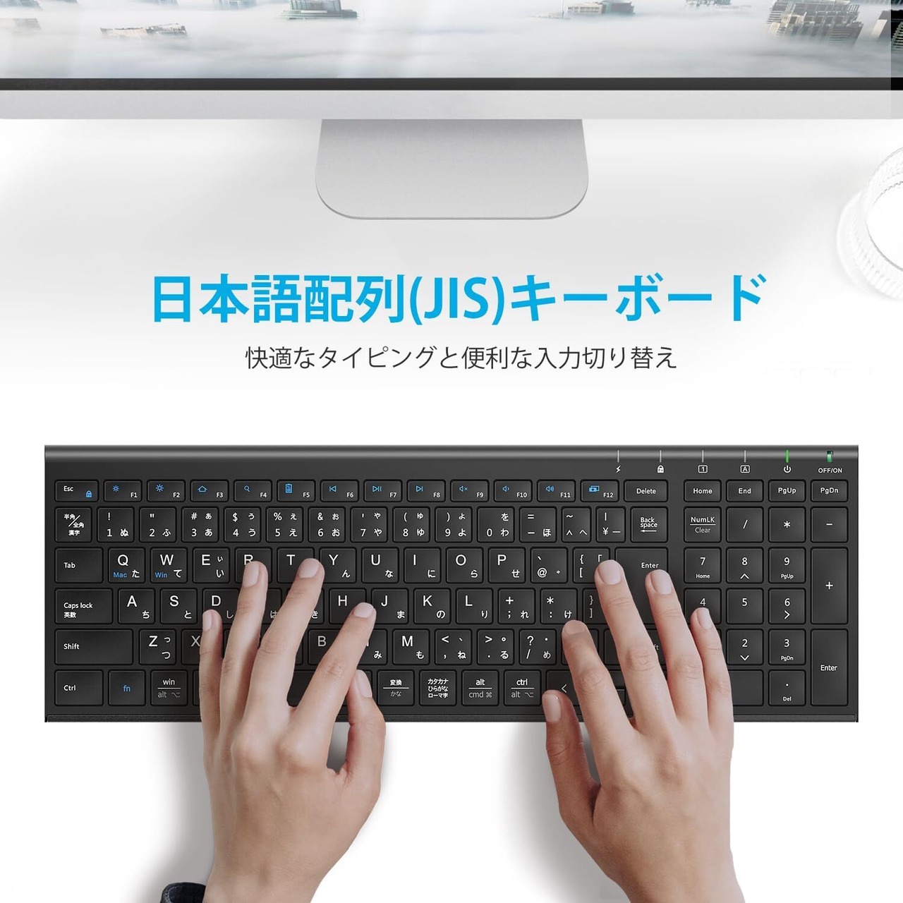 iClever キーボード ワイヤレス キーボード マウスセット 日本語配列 静音 超薄型 無線 2.4G キーボード・マウスセット USB接続 キーボードType-C充電式 フルサイズ テンキー付き マウス3段階DPI パソコン PC多機能対応 Windows/Mac対応 IC-BK22Combo (ブラック)