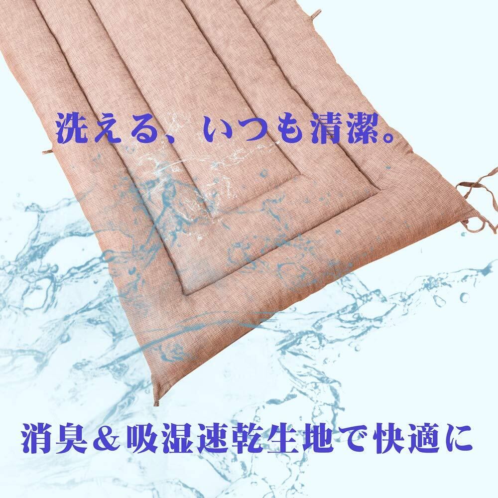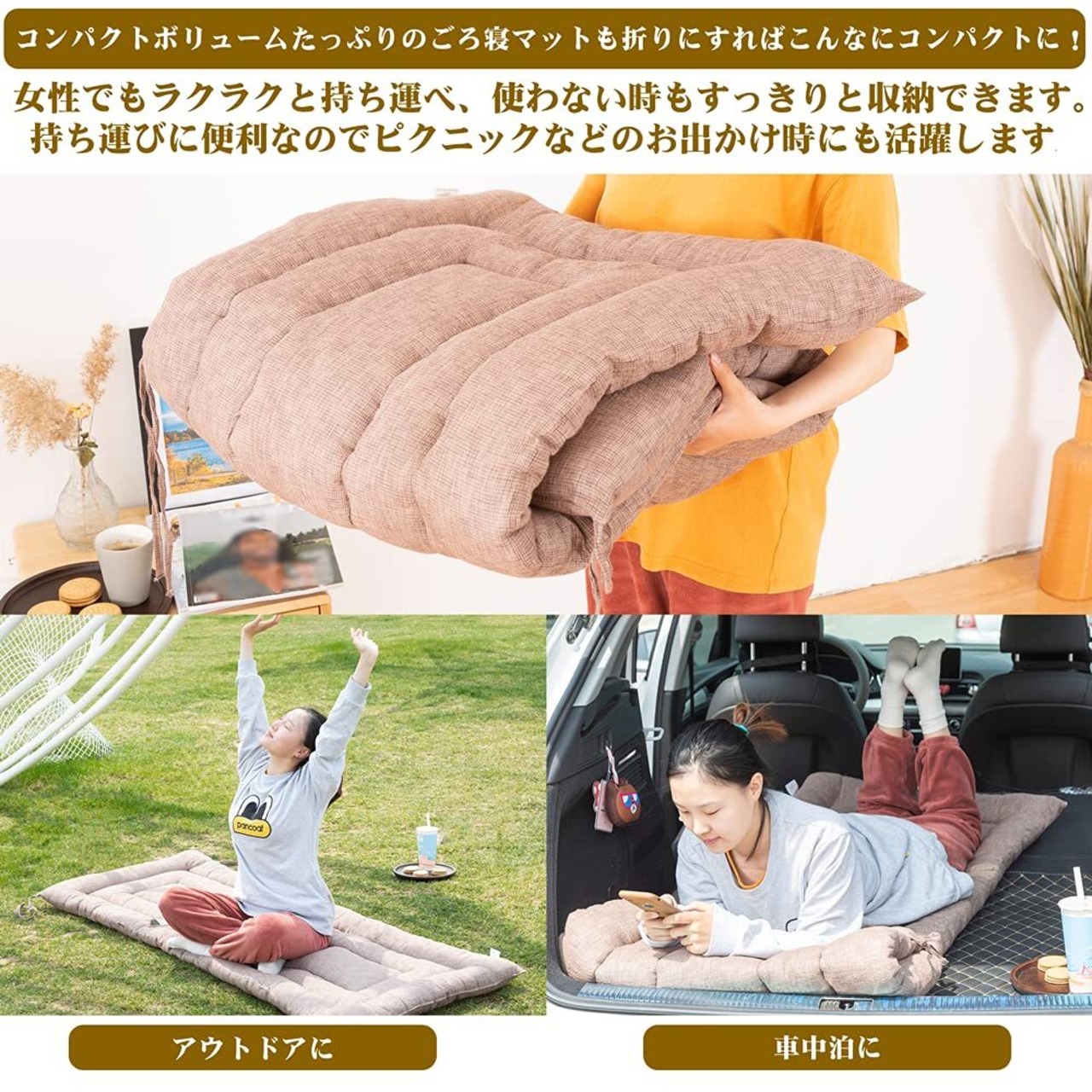 【限られた空間を快適に】ごろ寝マットとしても最適な、綿100%の敷きふとん。肌に優しく、吸汗速乾性に優れています。車中泊や来客用布団としても活躍します。70x190cmの大きさで、寝転がるのに充分!コンパクトサイズで折り畳みが可能なので、収納にも便利です。自分用だけではなく、来客用の敷布団にも使えます。また、3分の1のところで折りたたんで、壁などに寄せて即席のソファができちゃいます。背面は二層重ねてふっかり気持ちいい。