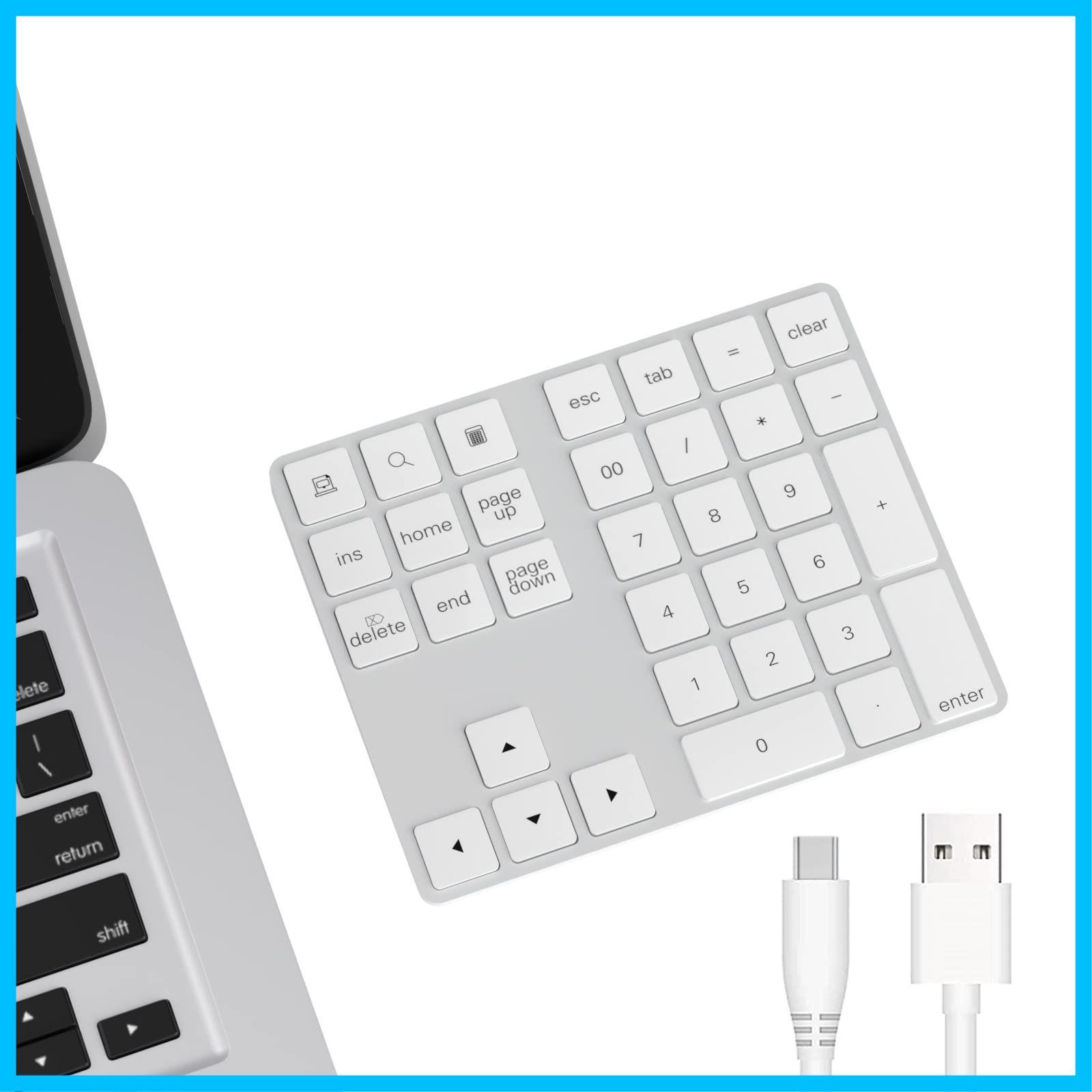 【34キーのフルサイズテンキー】34個のファンクションキー付きのワイヤレステンキーはホーム、終了、Numlock、Page up / down、Del、タブなどのキーがついており、数字の入力やスプレッドシート作成などお手軽です。