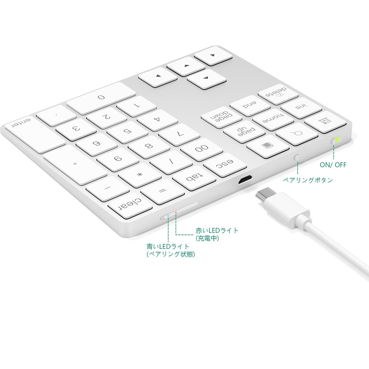 テンキー bluetooth Cateckテンキーワイヤレス [充電式] 34キー無線 数字キーボード ブルートゥース テンキー 人間工学設計 1000万回高耐久 持ち運び便利 コンパクト 小型 極薄型 Android/Windows/IOS 対応 MacsとPCs向けのデザイン