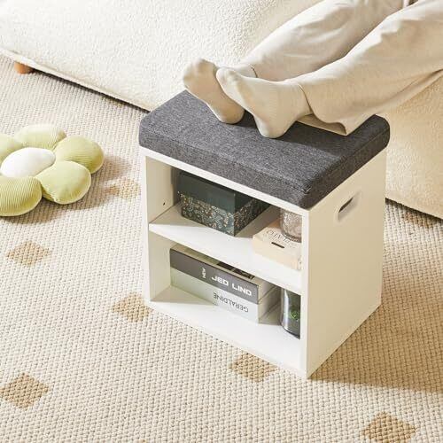YMYNY 玄関ベンチ シューズラック コンパクト 二重靴棚 調節可能な収納棚 ソフトマットシート付き 省スペース 木製 収納ツール 玄関スチール スリッパラック 玄関 リビング 廊下 寝室 39*28*42cm ホワイト JPHBD028W
