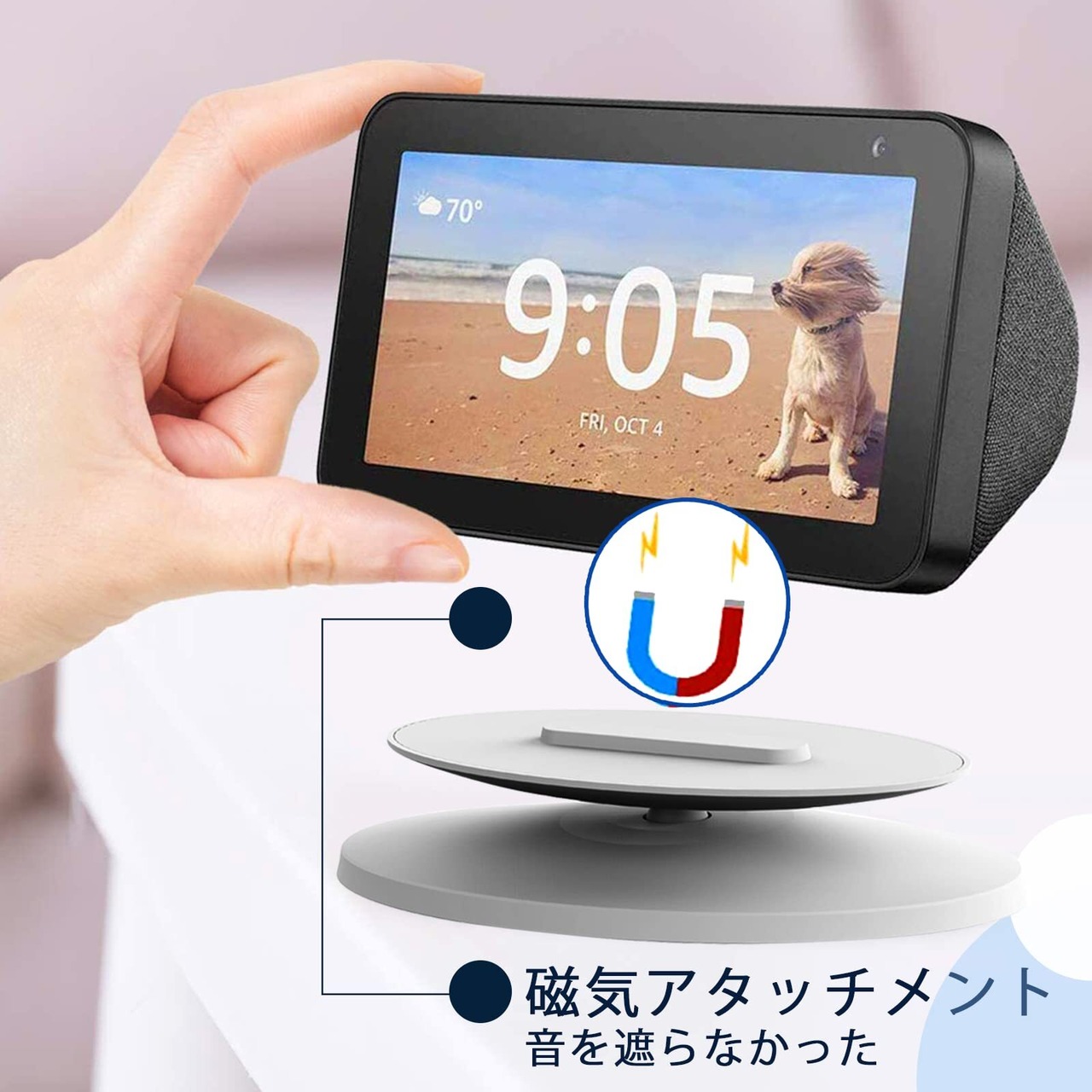 【360度水平回転】完全な360度スイベルマウントには複数の精密ボールベアリングがあり、磁石なのでインストールしやすいです。本体画面が動かないので、スタンドにのせて好きな角度に変えられます。これは、デバイスがスマートホームエクスペリエンスを強化するための優れたツールです。