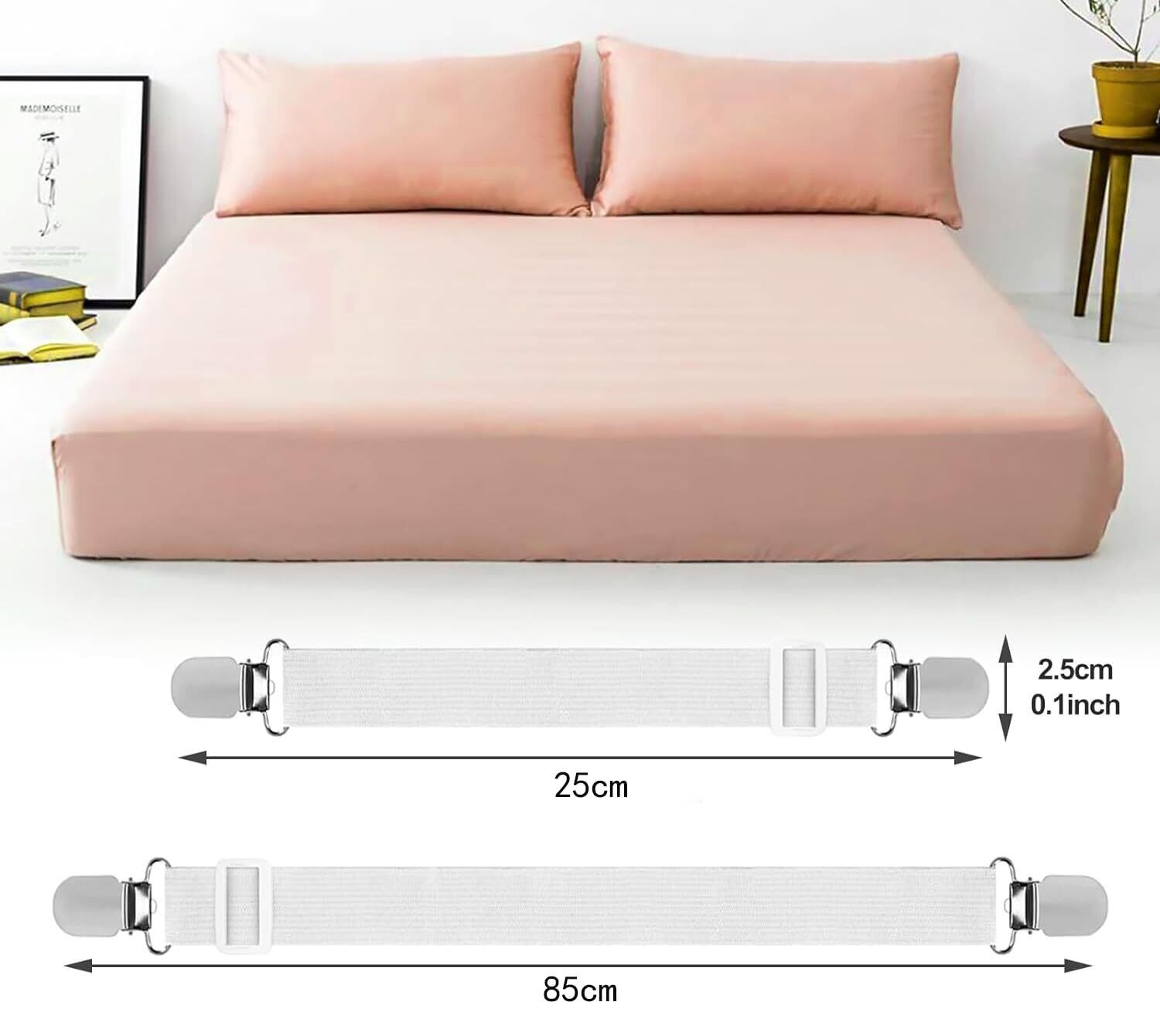 JUTOSU ベッドシーツクリップ 布団クリップ シーツクリップ アイロン台カバークリップ ズレ防止クリップ お布団ズレ落ちクリップ 防止クリップ ベッドパッド クリップ ゴムバンド 布団固定器 ズレ防止 滑り止め コーナー止め 調節可能 (ストレートタイプ 白 4本)