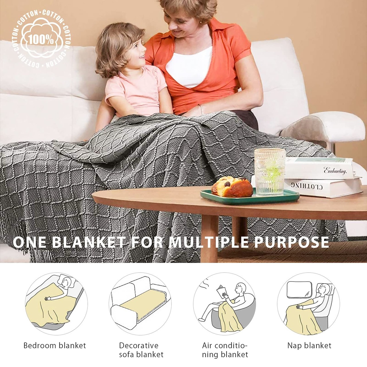 【絶妙なデザイン】カシミヤの質感のニットブランケット、絶妙な職人技が高密度のニットの幾何学模様を表現しています。ピュアカラーマッチング、シンプルでピュア、ハイレベルな質感を際立たせます。クラシックなタッセルの裾、大きなタッセルと小さなタッセルのクリエイティブな交互が、毛布の全体的なデザインをより滑らかにします、人生のムードを失わずに暖かく保つ。さまざまな装飾のニーズに合わせて、さまざまな色をご用意しています。