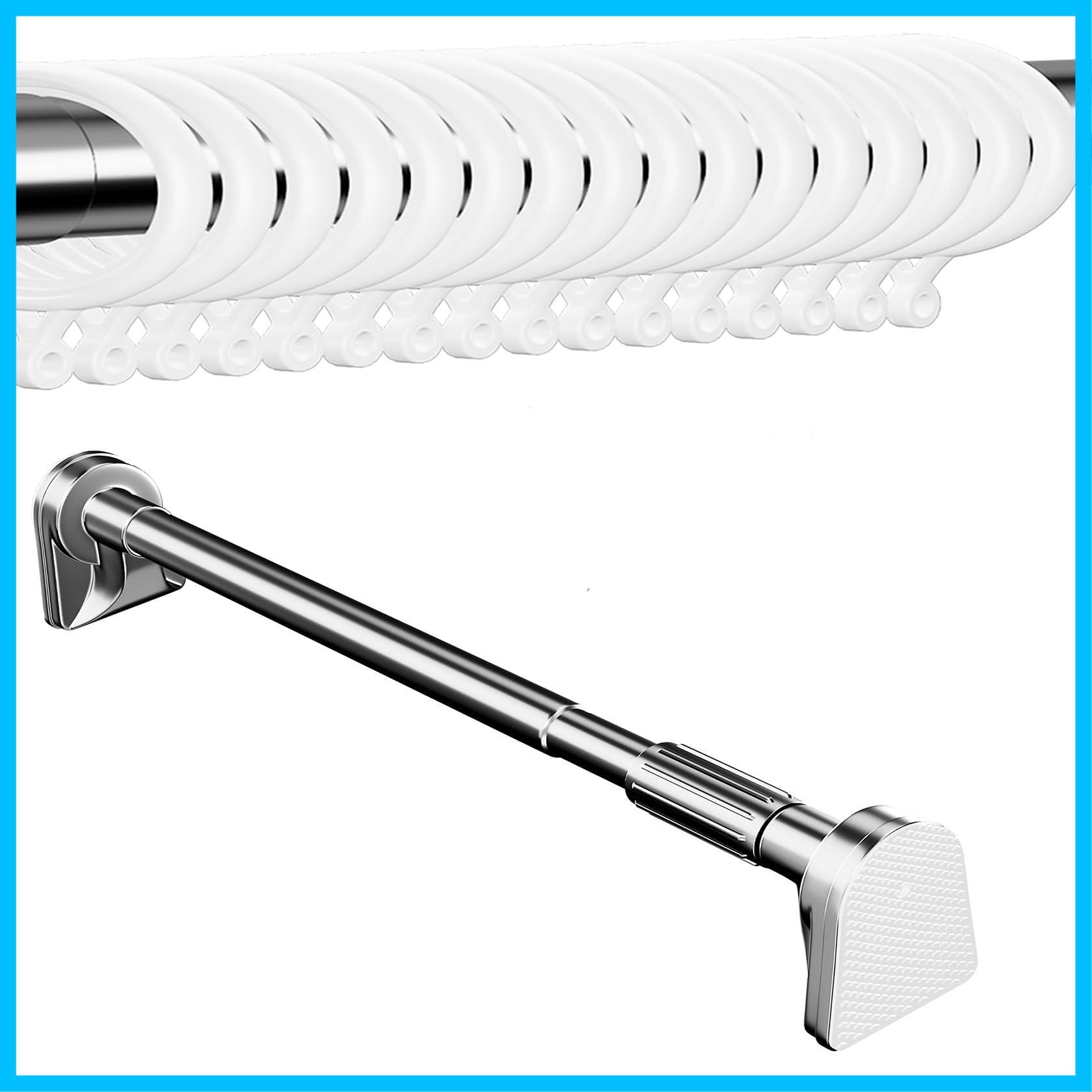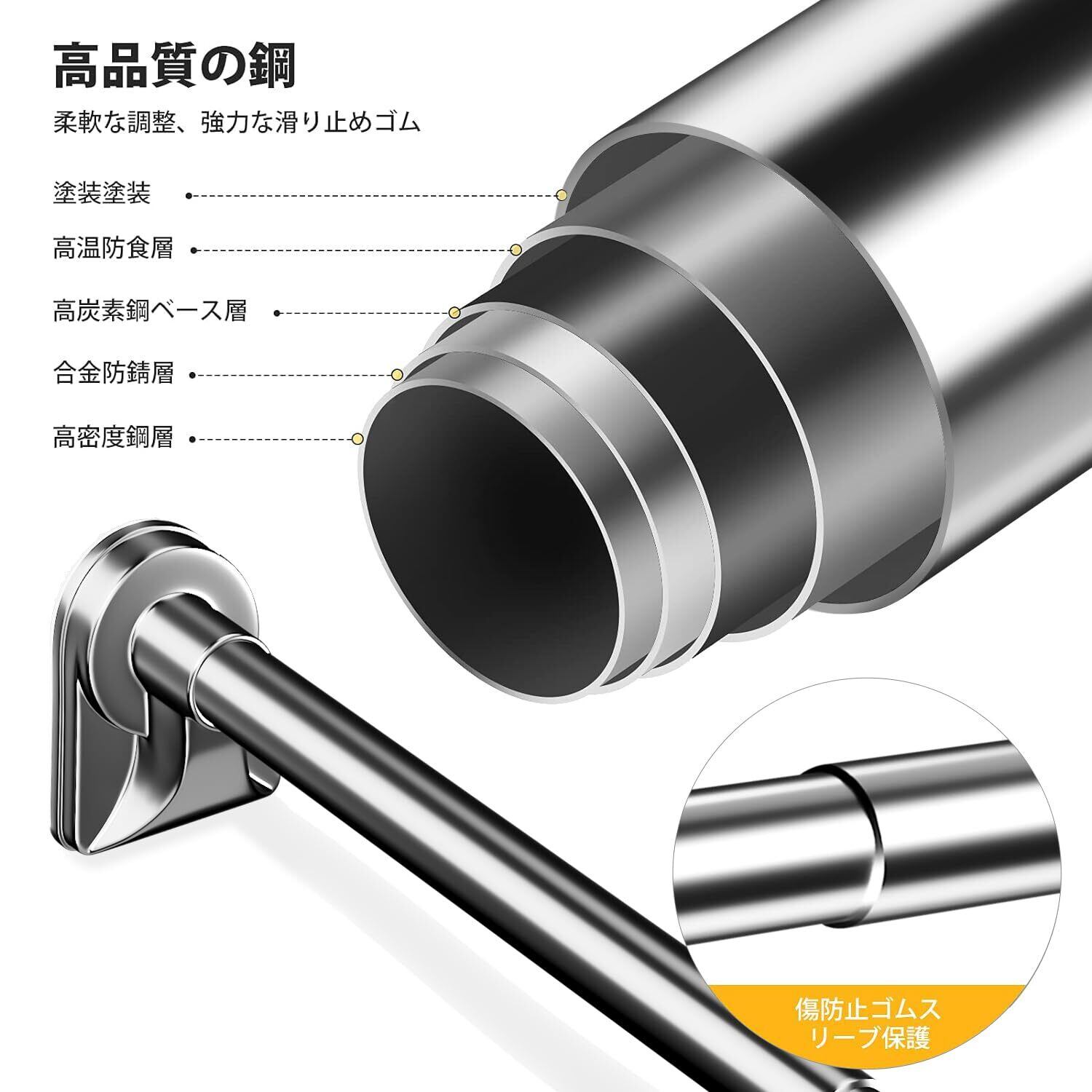 強力 突っ張り棒 160cm 錆びない 室内 つっぱり棒 幅:90-160cm ステンレス鋼色 伸缩棒 18個のカーテンリング付き SCK-DM25mm (90-160cm)