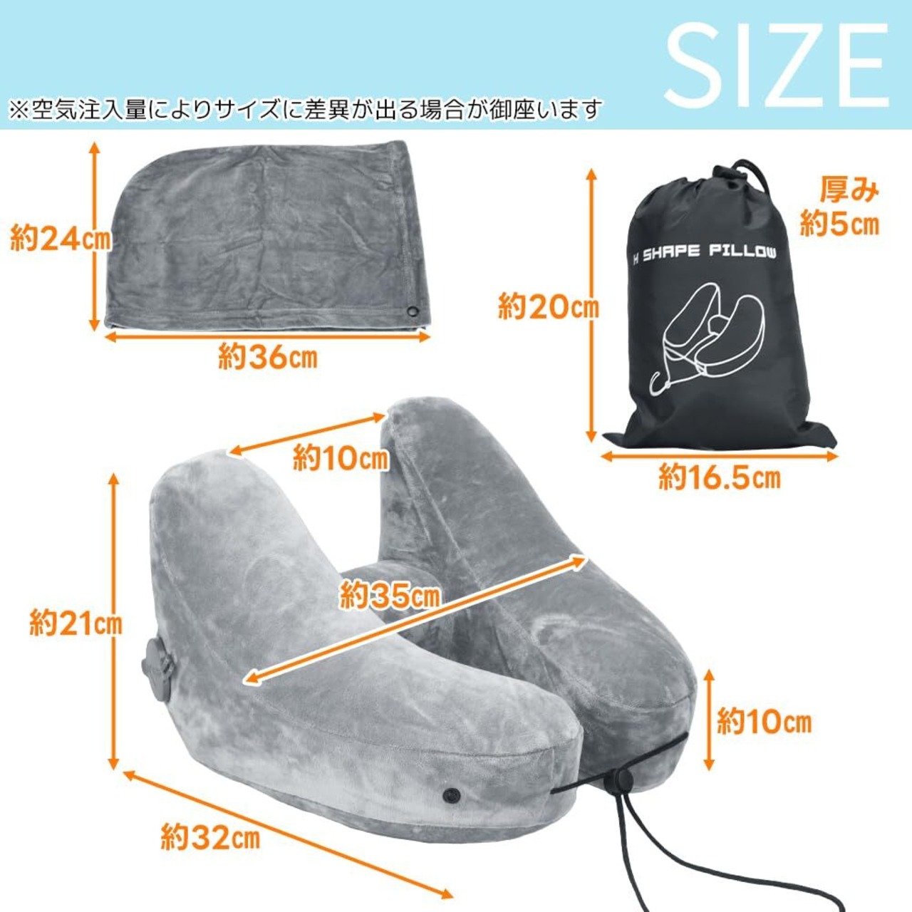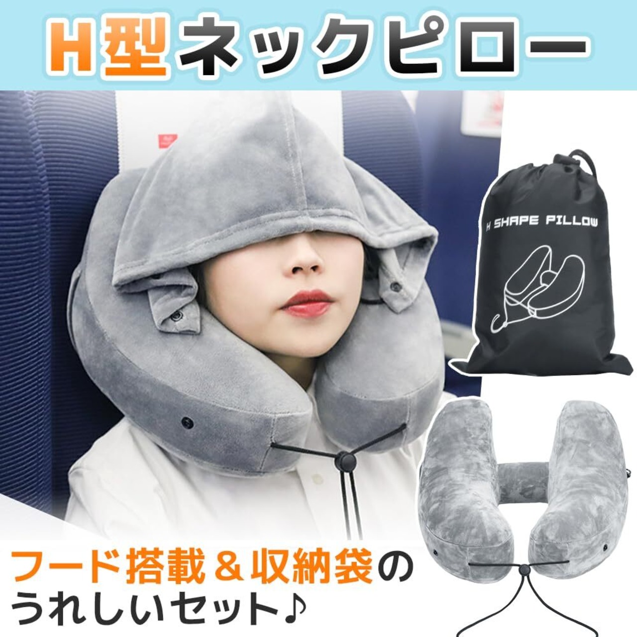 【セット内容】H型ネックピロー×1点 フード×1点 収納袋×1点 【サイズ(約)】35cm×32cm×21cm 【カラー】パールグレー 【材質】カバー:PVC+ベルベット ネックピロー:TPU+ポリエステル
