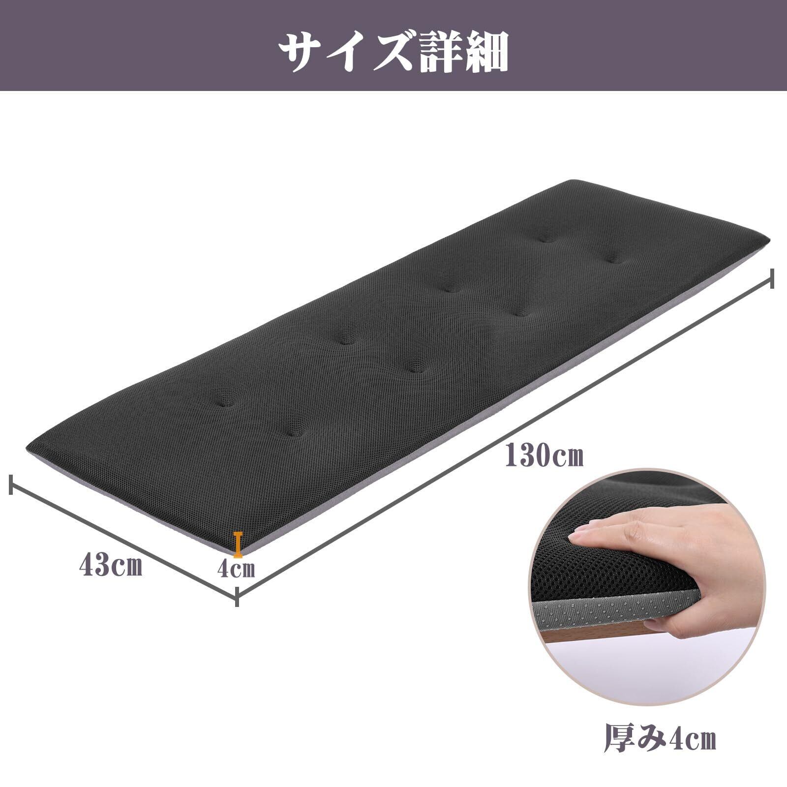 Shinnwa 竹炭入り 高反発 長座布団 除湿 消臭 座布団 お尻が痛くならない クッション 超通気 メッシュカバー 蒸れない 長方形 3人掛け ソファパッド ソファーシートクッション オールシーズン フロアクッション 滑り止め付き 43*130cm ブラック