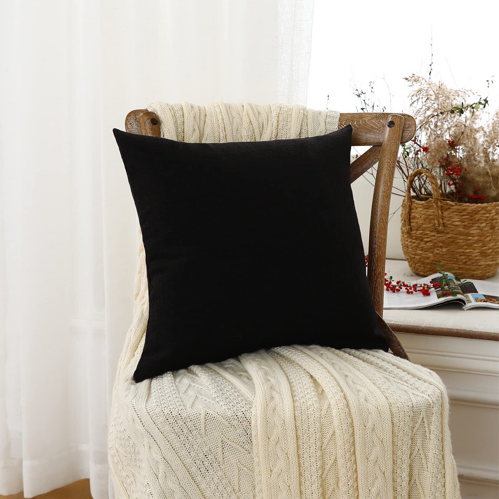 Silky Bunny クッションカバー 60 x 60cm 北欧 おしゃれ ソファ背当て リネンの質感 座布団カバ ー 無地 隠しジッパー装飾枕カバ ー ブラック 2枚セット