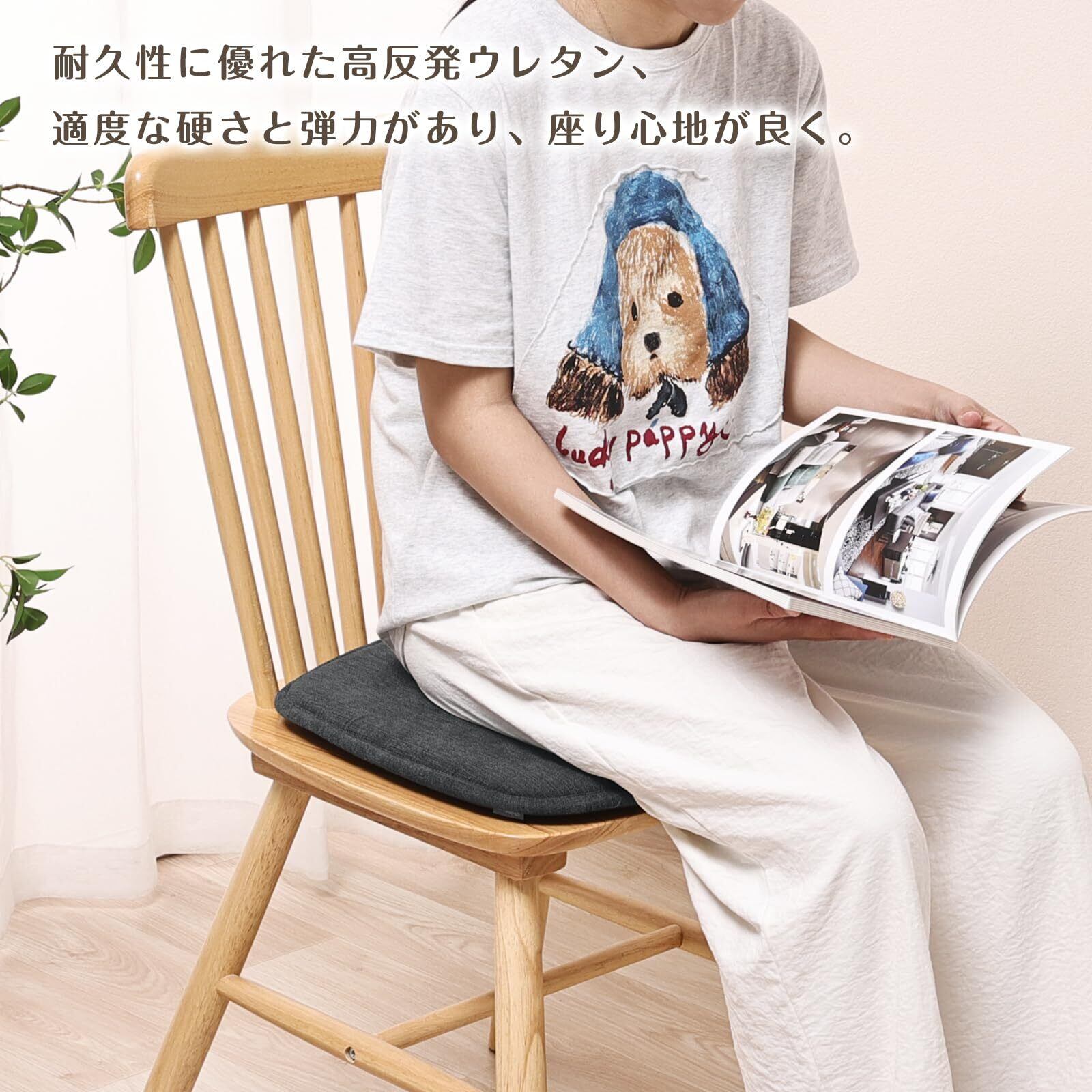 【お尻に優しい】高品質、耐久性のある高反発ウレタンフォームを採用、適度な硬さと弾力があり、座り心地が良く、木製のチェアやフローリングにお長く座てもお尻が痛くならない。座布団は厚み3cm、クッション性良い、座る時に底付き感なし、椅子との直接接触力が減らしますので、お尻や腰の負担も軽減されます。