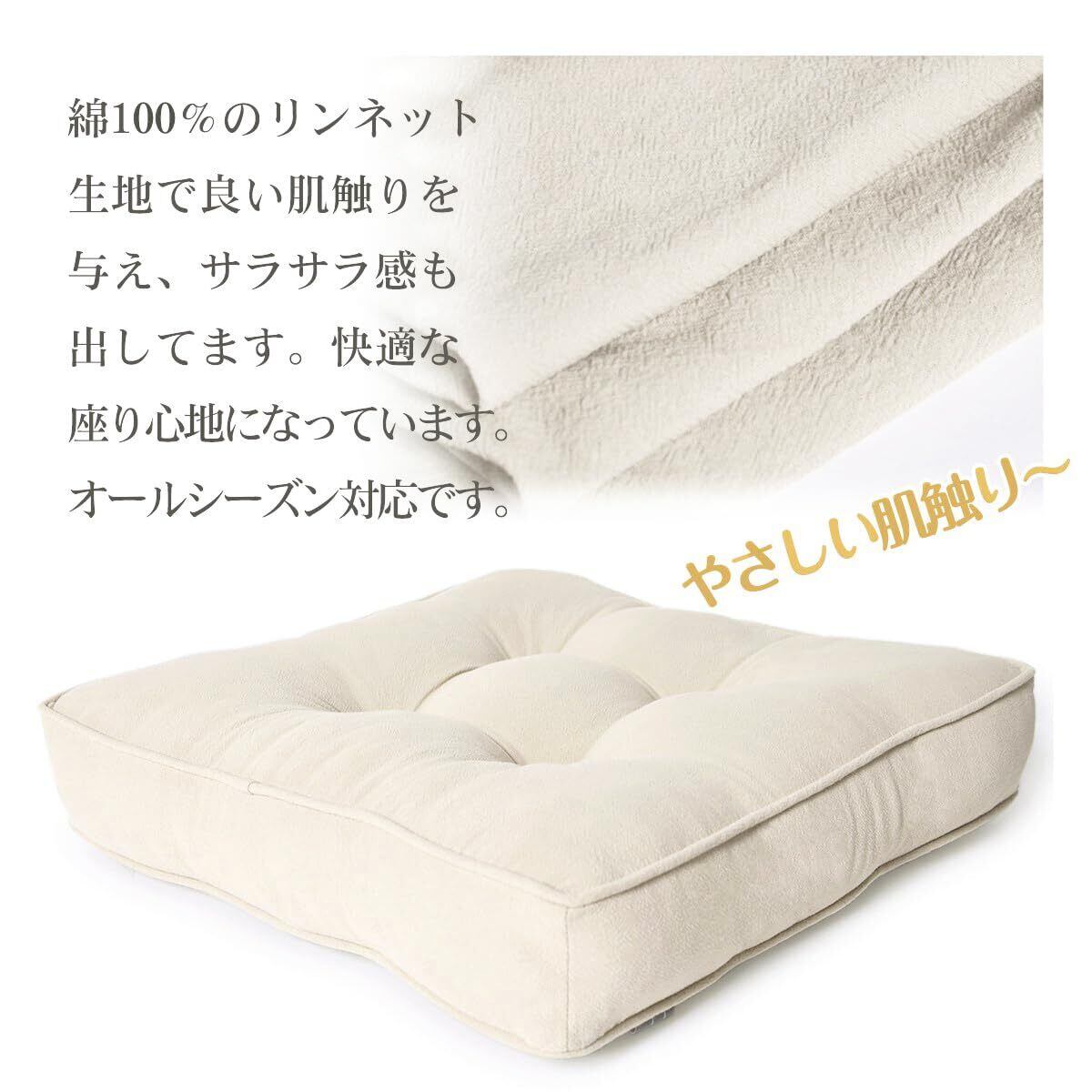 Baibu Home 座布団 クッション おしゃれ 綿100% 厚め7cm 椅子 クッション 40cm角 ざぶとん かわいい フロア 床用 オールシーズン
