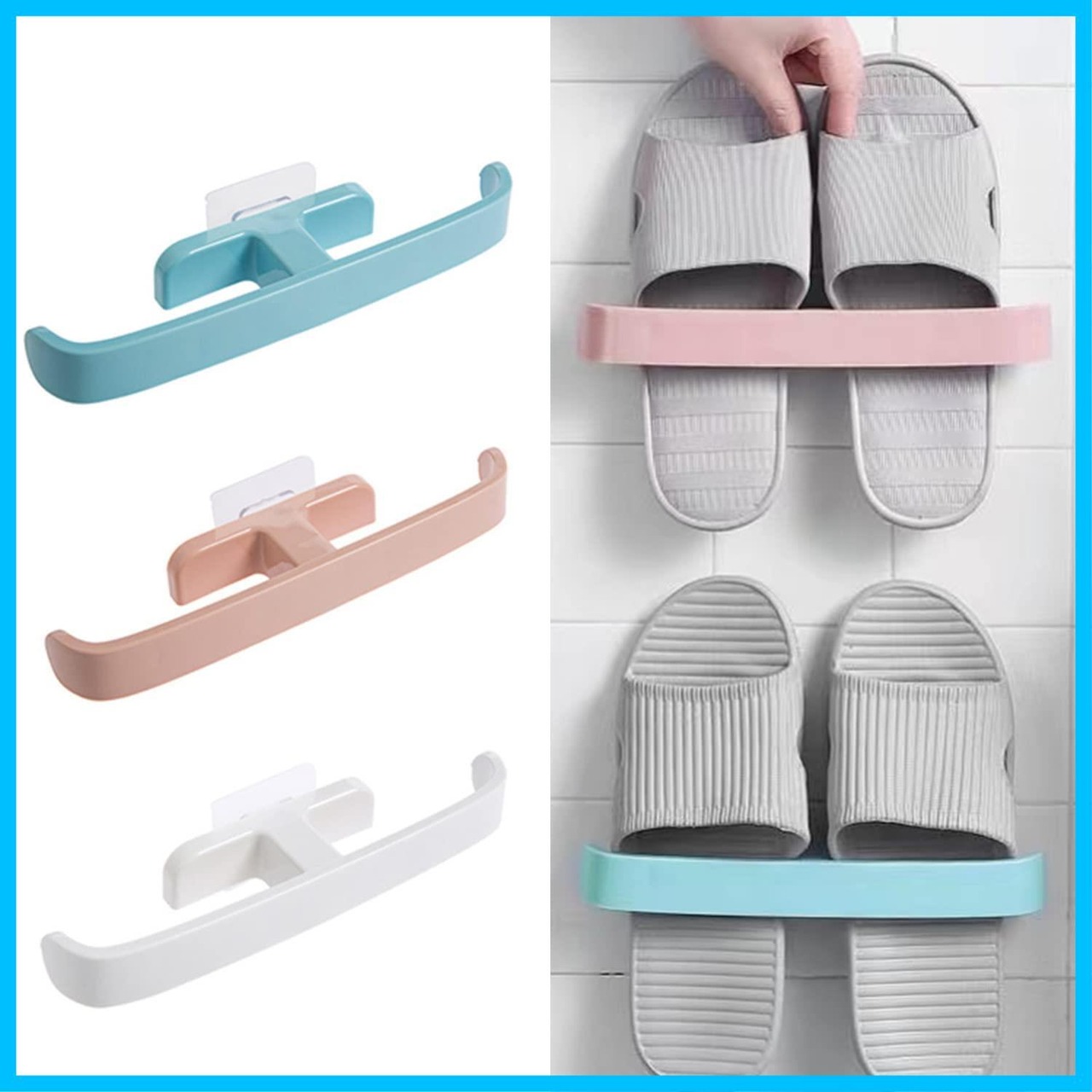 RICISUNG スリッパラック 玄関 壁掛け式 (3個入)省スペース スリッパ収納 シューズラック 室内 スリッパホルダー バスルーム 粘着式 便利 プラスチック 壁掛けフック シューズホルダー バスルームスリッパ収納 青、白、ピンク