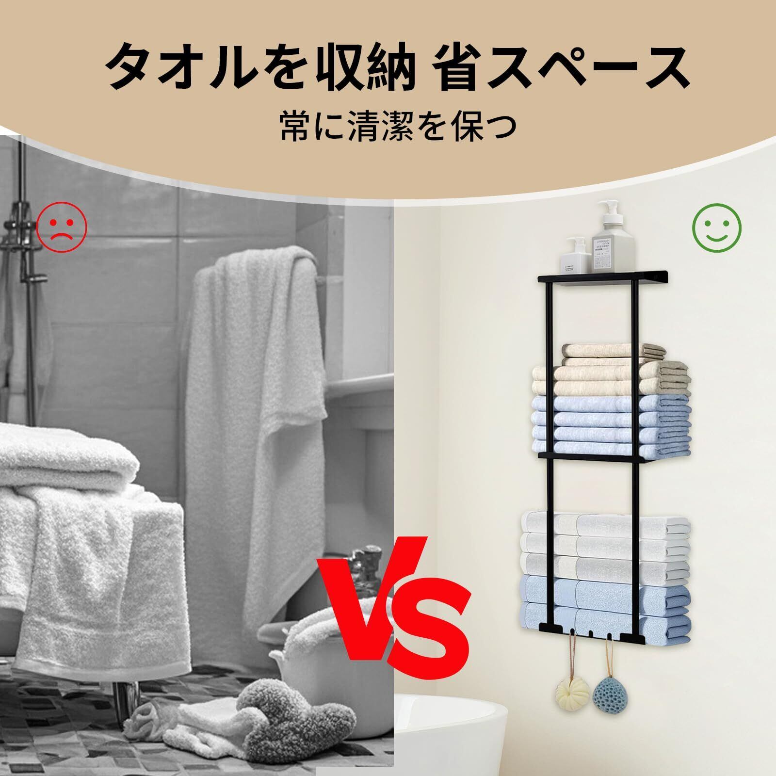 【省スペース】:このタオルラックは3段式デザインで、他の単段式または2段式のタオルラックより多くのタオルを掛けることができ、トイレやバスルームのスペースを大幅に節約し、これらの場所をよりきれいに整然とさせます。