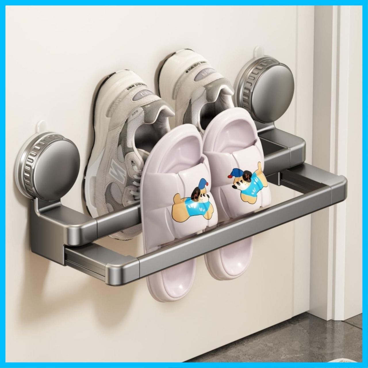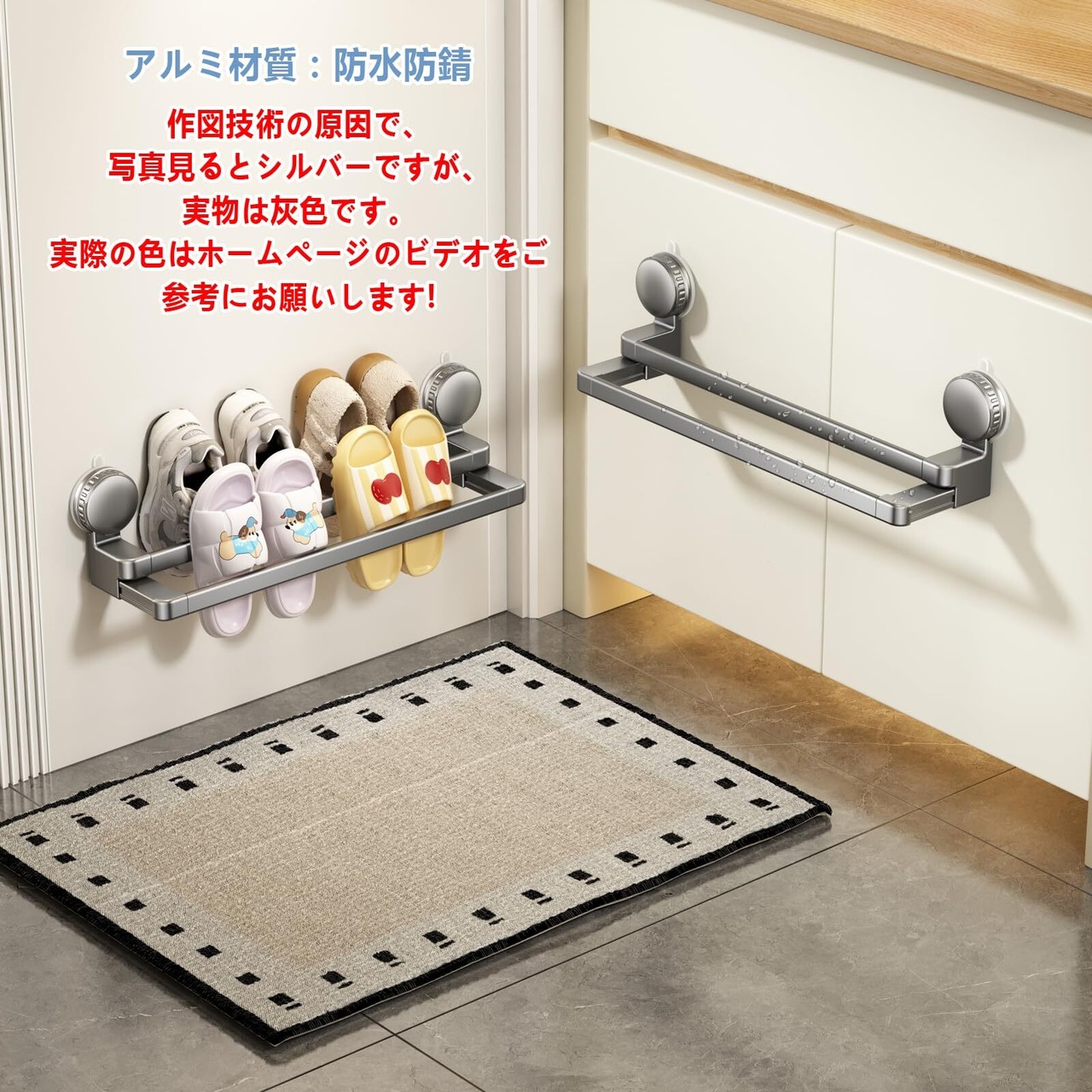 【新着商品】スリッパラック 粘着吸盤 スリッパ立て 壁掛け 靴下収納 金属 シューズラック 玄関 スリッパホルダー グレイ スリッパスタンド 伸縮 浴室用 防水防錆 30cm