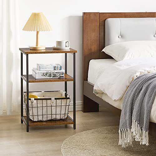 【人気商品】IBUYKE サイドテーブル コンパクト ヴィンテージ風 ナイトテーブル 多機能 オープンラック 3段 収納ラック アジャスター付 小物置き 組立簡単 おしゃれ 39x29x59cm JPTMJ402H