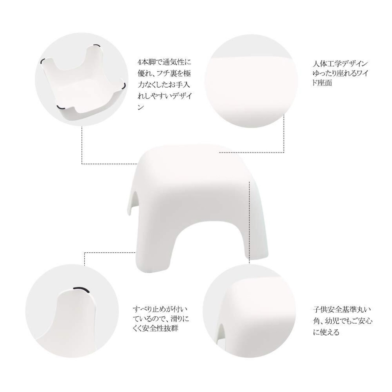 【安定性抜群】の接地面は一周周り滑り止めグムが付いて、他の四点式滑り止め付き脚より安定性も抜群!